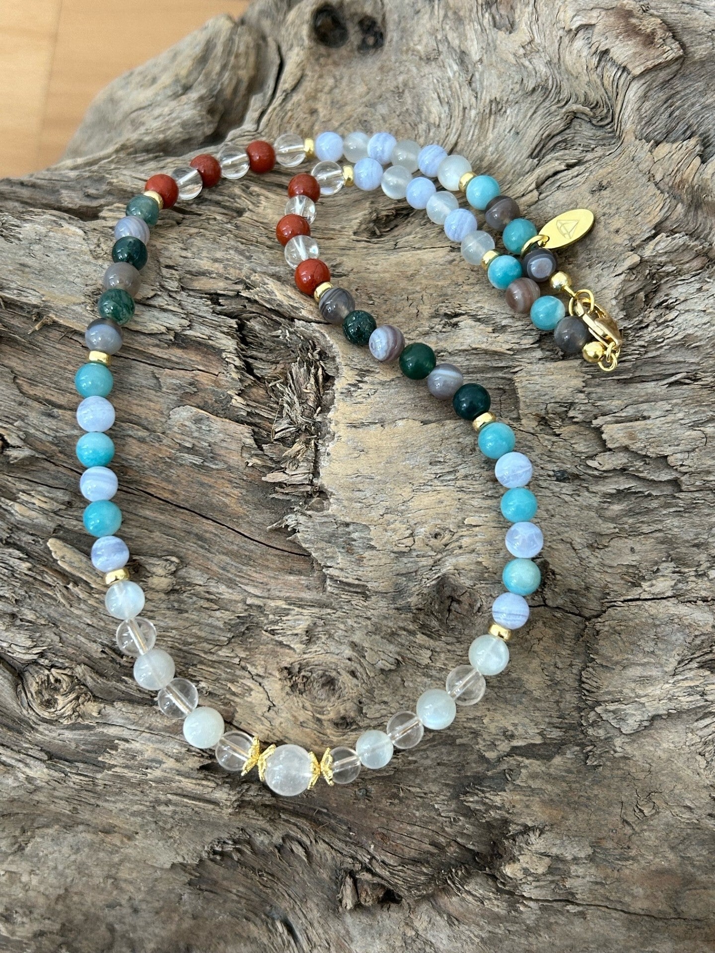Jaspis rot: stärkt die Leber; fördert die Verdauung; regelt das körperliche Gleichgewicht; erleichtert das Verarbeiten von Emotionen; hilft mit beiden Beinen im Leben zu stehen und den Alltag zu bewältigen