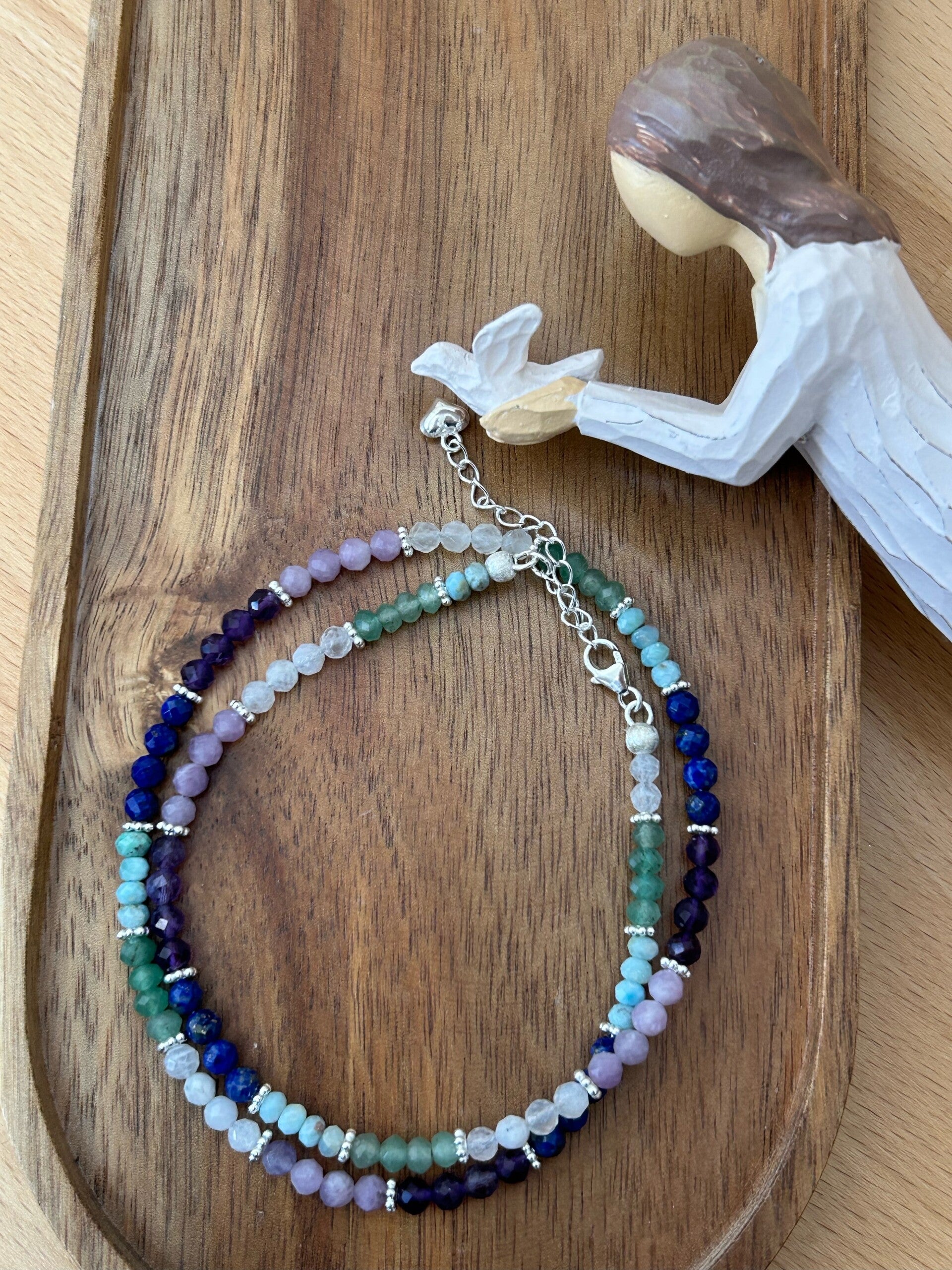 Hinweis: mit Schmuck-Draht; Silber 925 Elemente und 5cm-Verlängerungsstück mit Herz; Kugeln 4mm facettiert