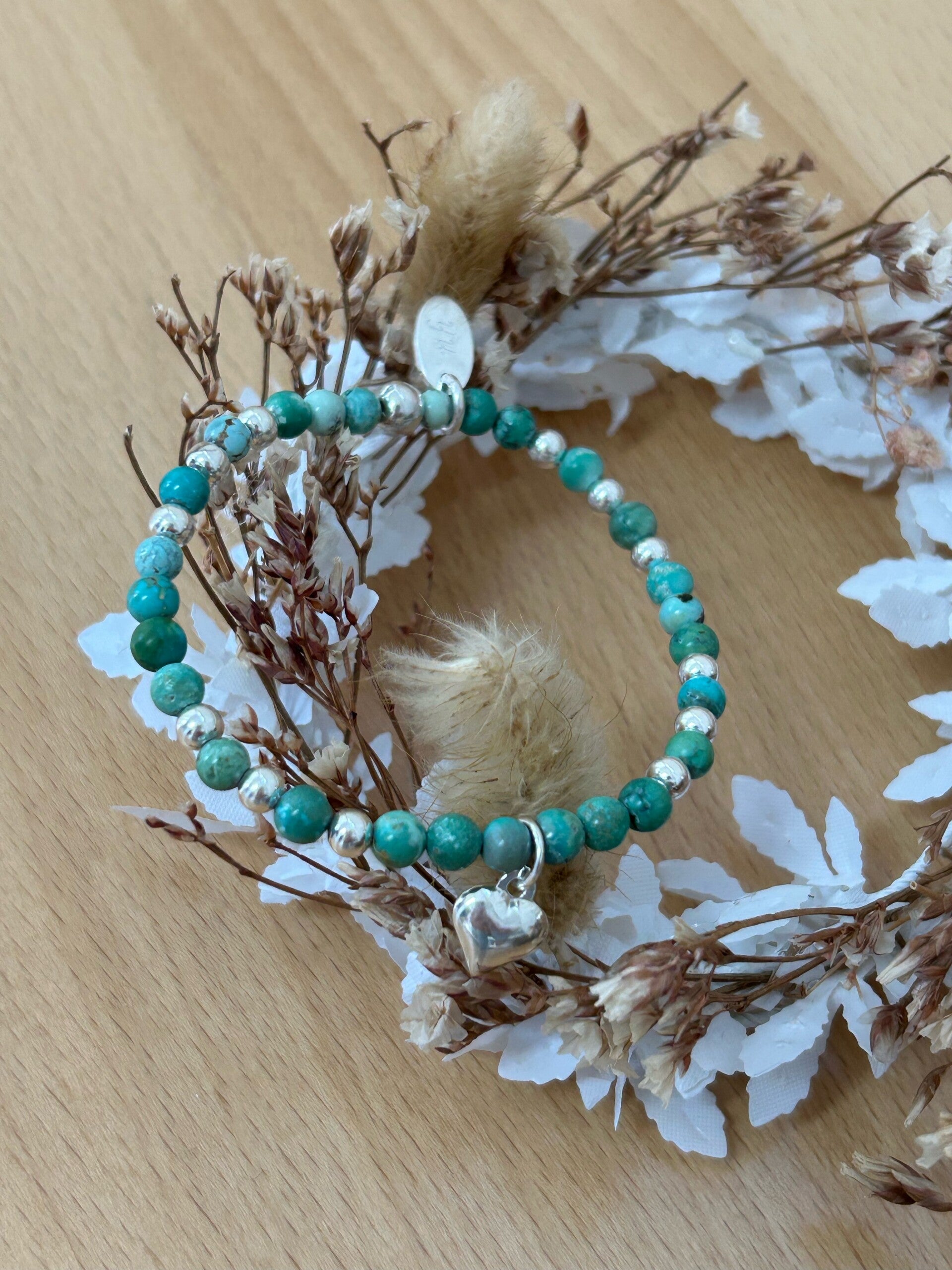 Hinweis: mit Stretch-Band; Silber 925 Anhänger "Herz" und Kügeli; Kugeln 4mm