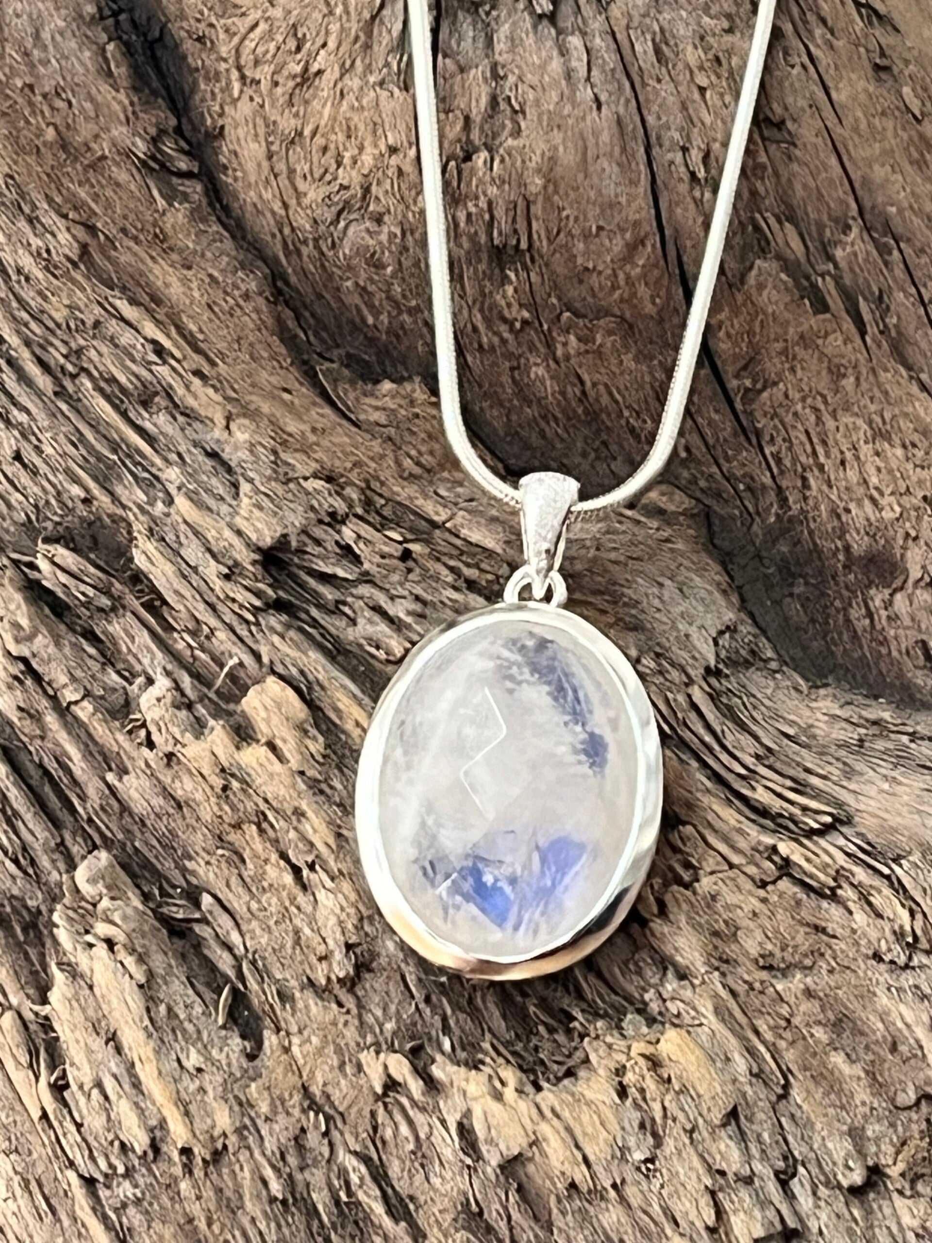 Länge: 45, 50 oder 60 cm wählbar; Silber 925 Schlangenkette und Steineinfassung; Anhänger 22 x 18mm facettiert