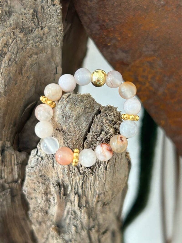 Kirschblüten-Achat: Er ist der ideale Begleiter nach einer Trennung oder um ein Business aufzubauen; er steht symbolisch für den «Neuanfang»; er stärkt das Durchsetzungsvermögen und lässt auf Situationsveränderungen wesentlich besser reagieren; er sorgt für Stabilität und Erdung; er fördert die Entfaltung der Persönlichkeit und das Aufblühen der Seele; er unterstützt das Persönliche Wachstum und lässt dich alle Wünsche, Visionen und Projekte visualisieren um sie in dein Leben zu rufen; löst Ärger, Streit, Ängste, Hemmungen, Blockaden und Spannungen; stärkt die Rhetorik und das Selbstvertrauen