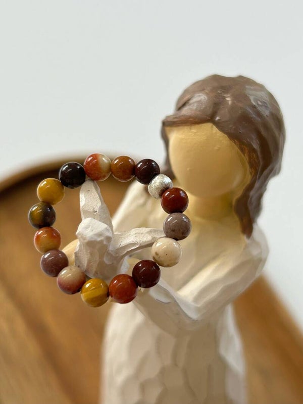 Mookait: stärkt Funktionen von Milz und Leber; hilft Gesundheit langfristig zu stabilisieren; regt Entgiftung des Gewebes an; fördert geistige Flexibilität, inneren Frieden und Geborgenheit; idealer Reisebegleiter