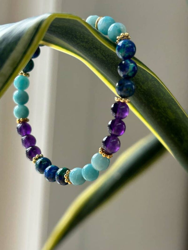 Heilsteine (Link zu Beschreibung und Wirkung): Amazonit, Amethyst, Azurit-Malachit