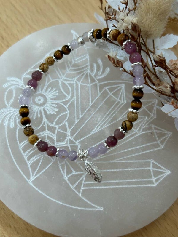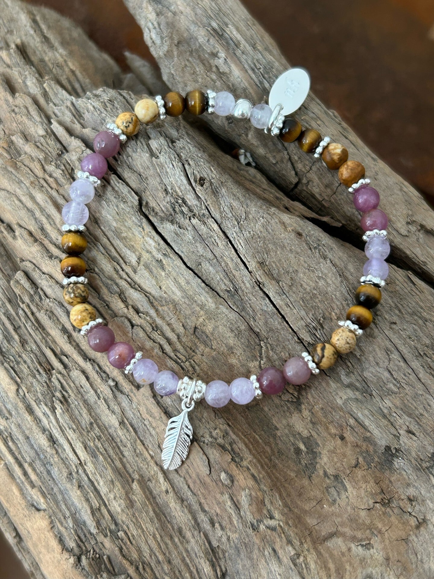 Hinweis: mit Stretch-Band; Silber 925 Anhänger "Feder" und Elemente; Kugeln 4mm
