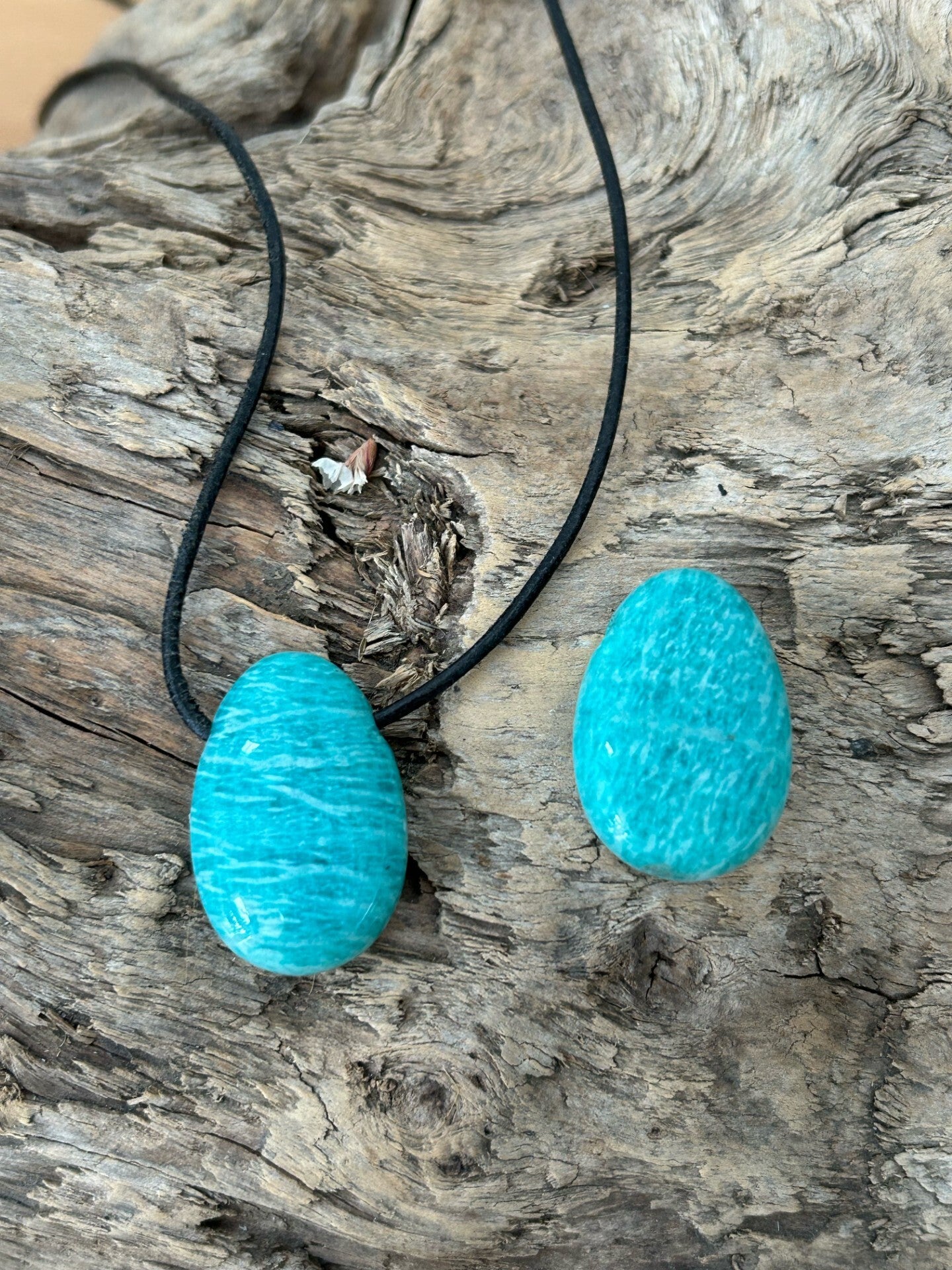 Hinweis: mit Lederband; Stein 30 x 19 mm