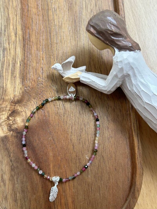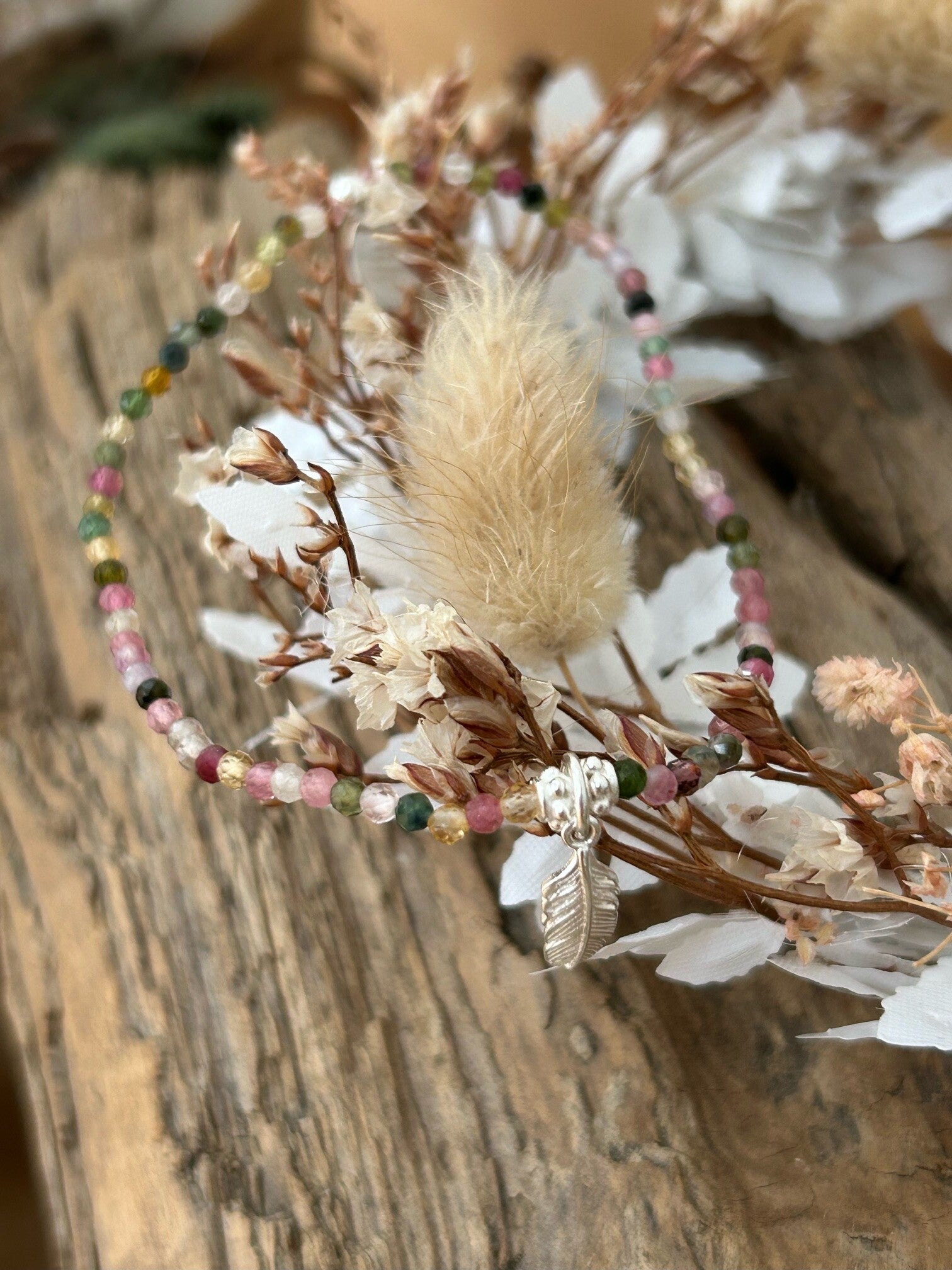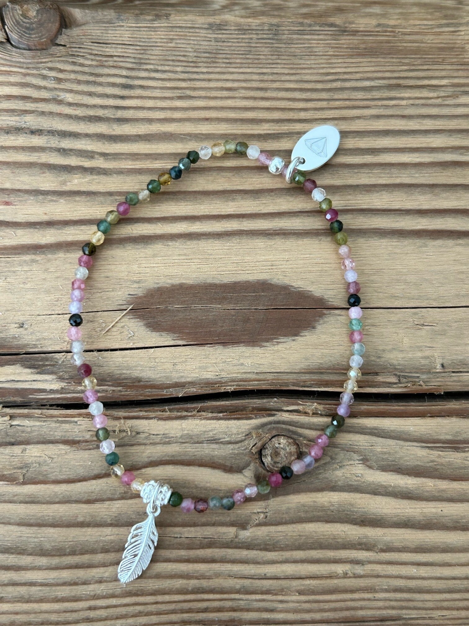Hinweis: mit Stretch-Band; Silber 925 Anhänger "Feder" und Elemente (auch ohne Anhänger bestellbar); Kugeln 2mm facettiert