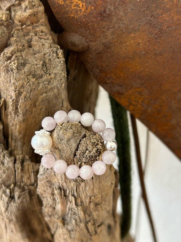 Fingerring - Kunzit/Süsswasserperle (R037)