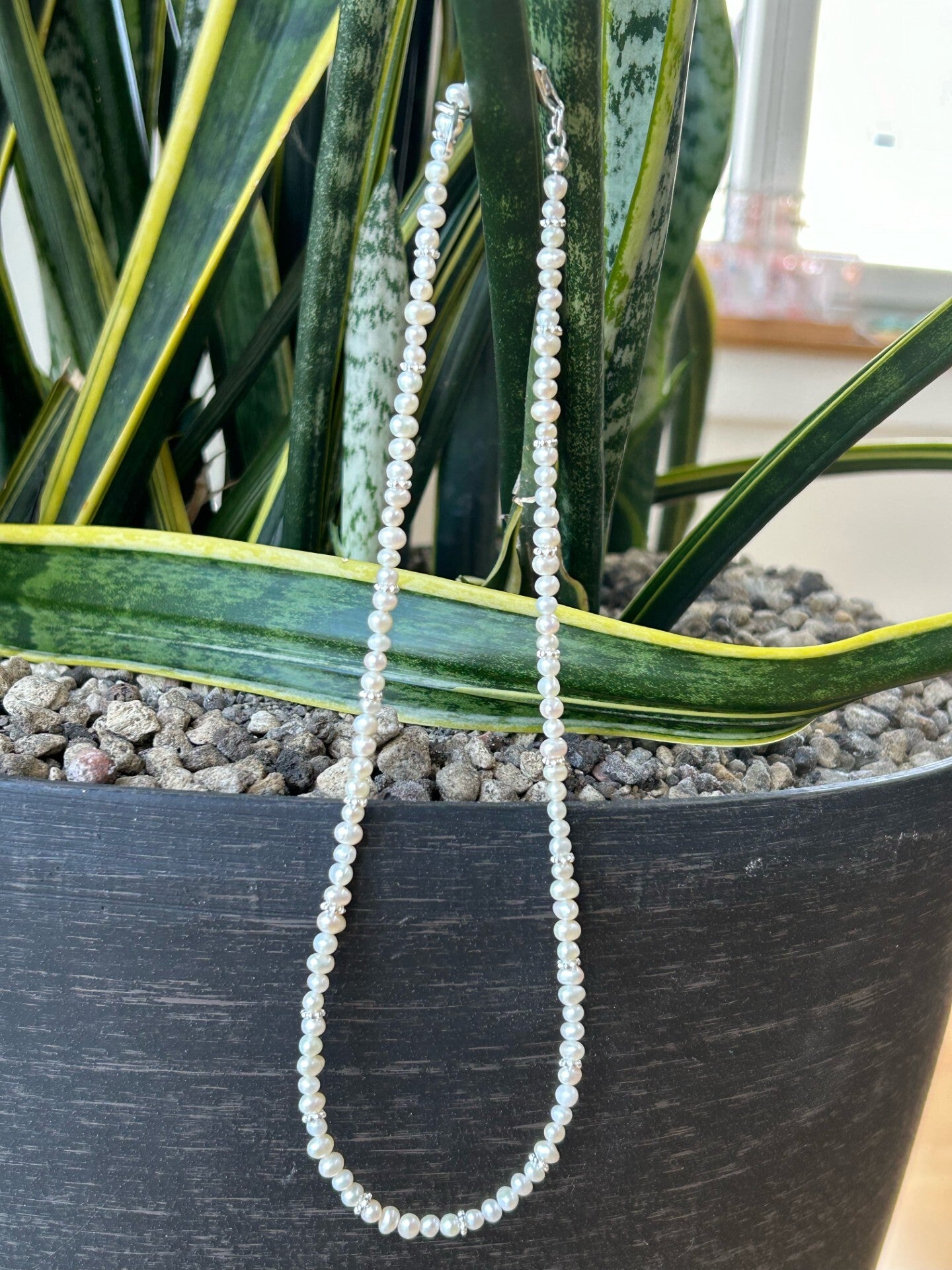 Länge auf diesem Bild: 44 cm (Deine genaue Wunschlänge in den Kommentar eintragen und die entsprechende Preisklasse wählen); Silber 925 Elemente; Kugeln 4mm