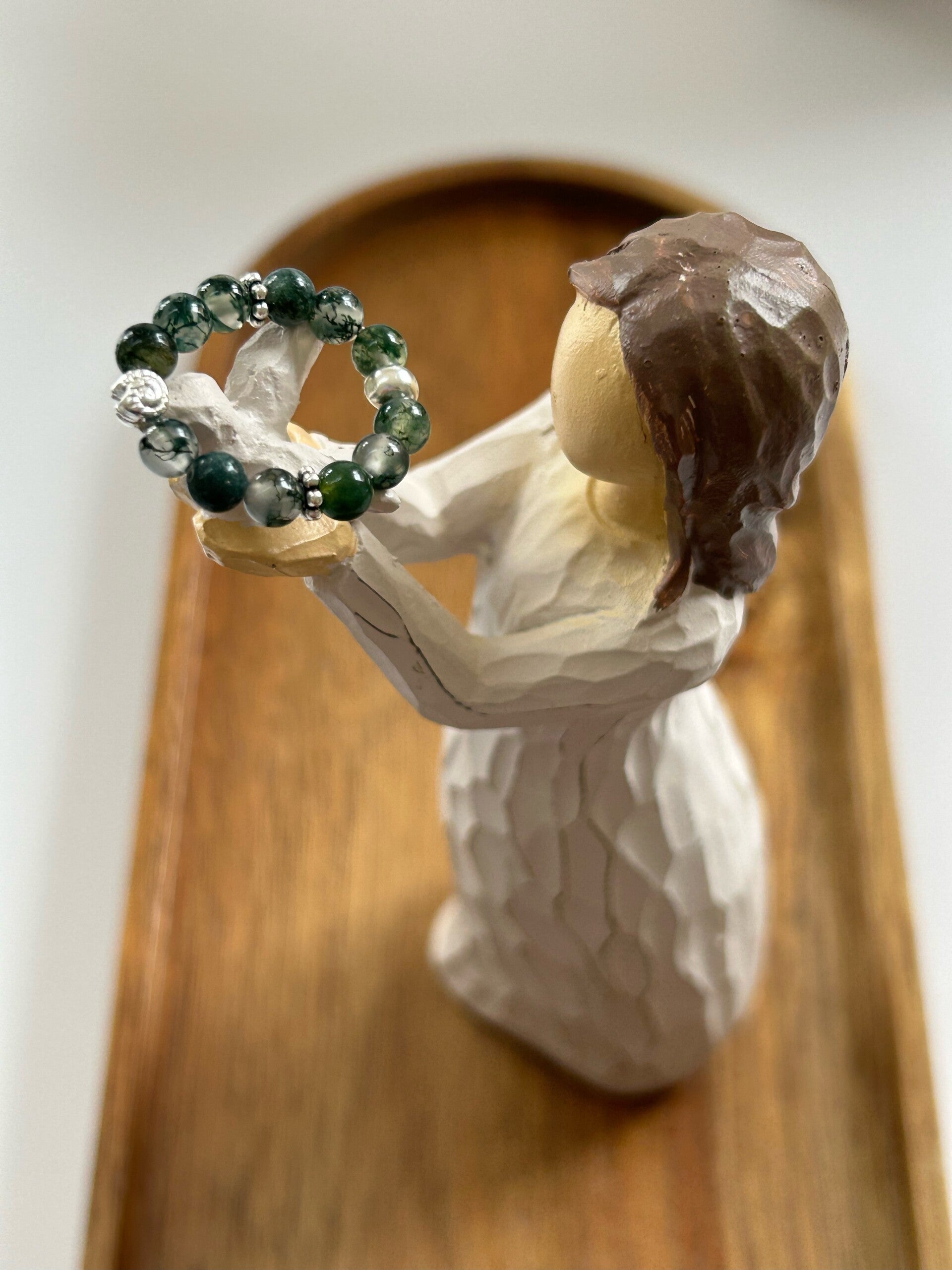 Moosachat grün: senkt zu hohen Cholesterinspiegel; wirkt schleimbildend bei trockenem Husten; wird bei hartnäckigen Infektionen der Lunge, Atemwege und bei Nebenhöhlenentzündung eingesetzt; hilft bei Hitzewallungen verbessert die Verdauung; lindert Wetterfühligkeit; hilft bei Aggression, Kummer und Wut
