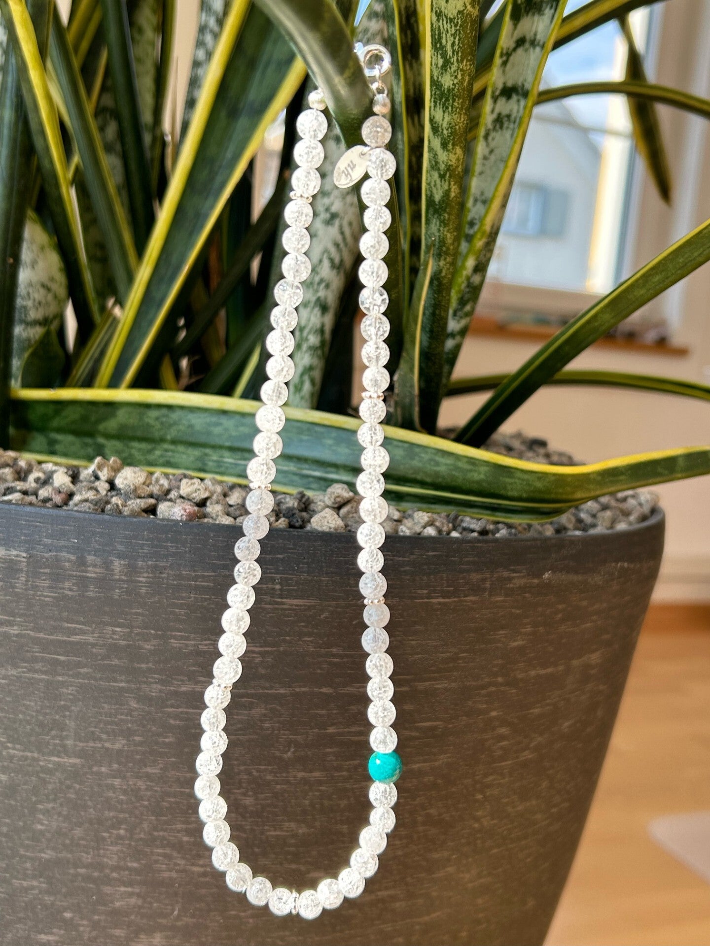 Halskette - Bergkristall Iris/Türkis Mongolei (H354)
