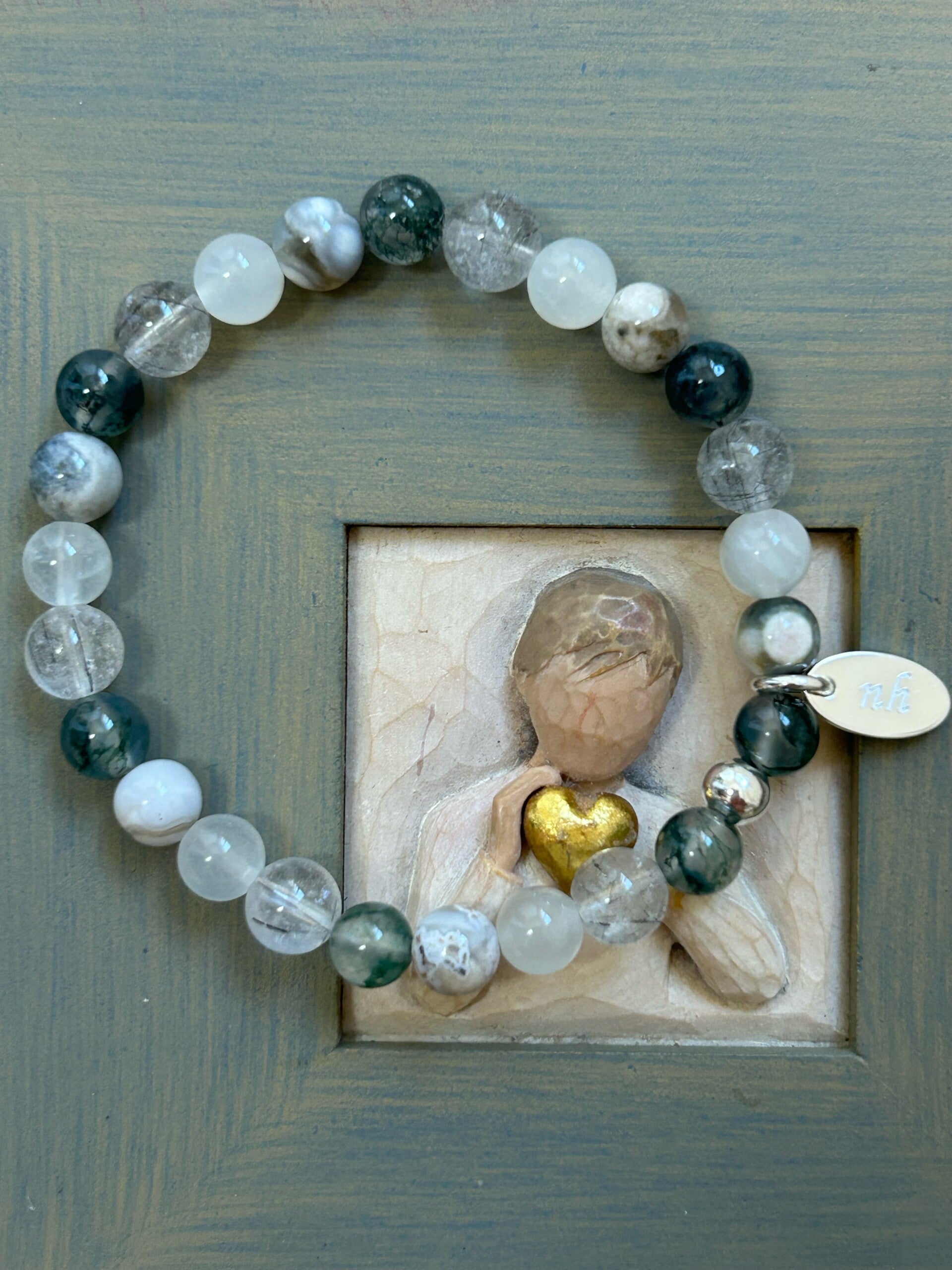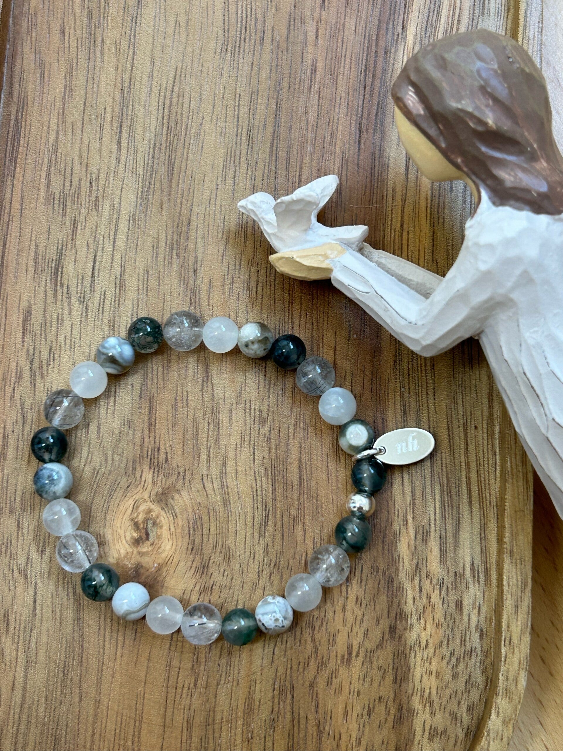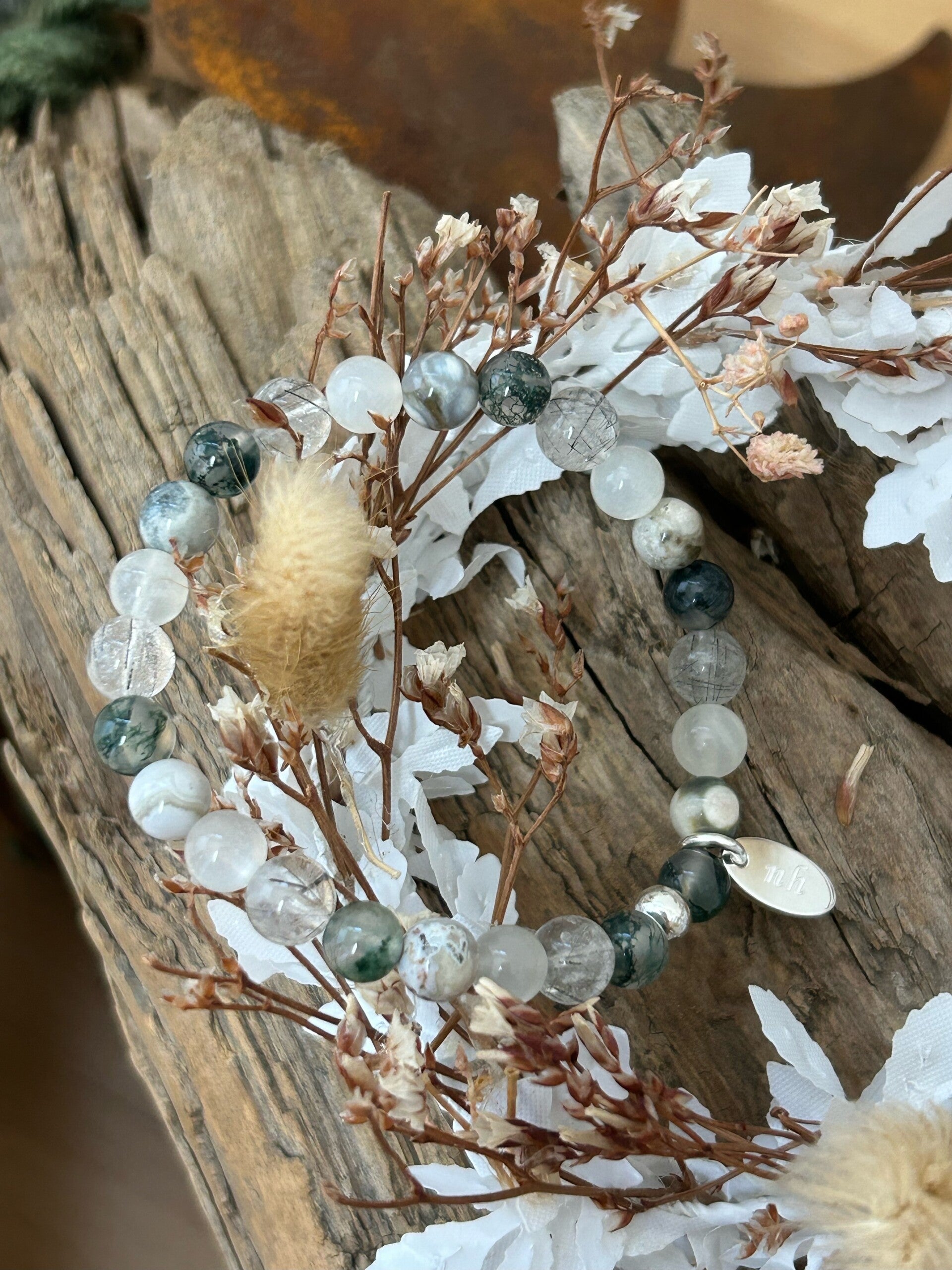Heilsteine: Mondstein weiss, Moosachat grün, Ozean-Achat, Turmalin Quarz