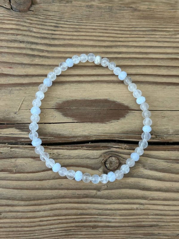 Heilsteine (Link zu Beschreibung und Wirkung): Chalcedon blau, Mondstein weiss