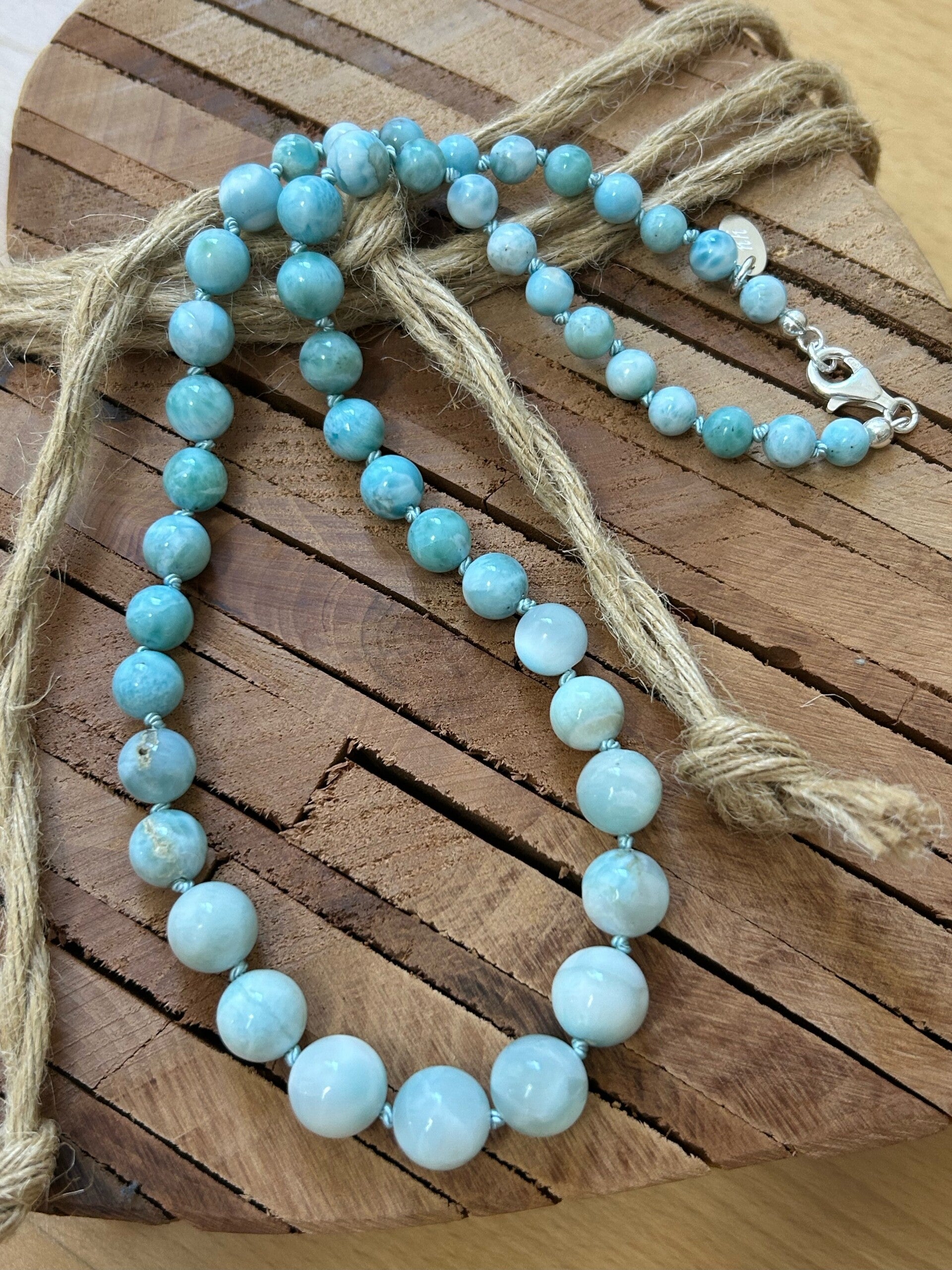 Halskette - Larimar, handgeknüpft (H368) Einzelstück!