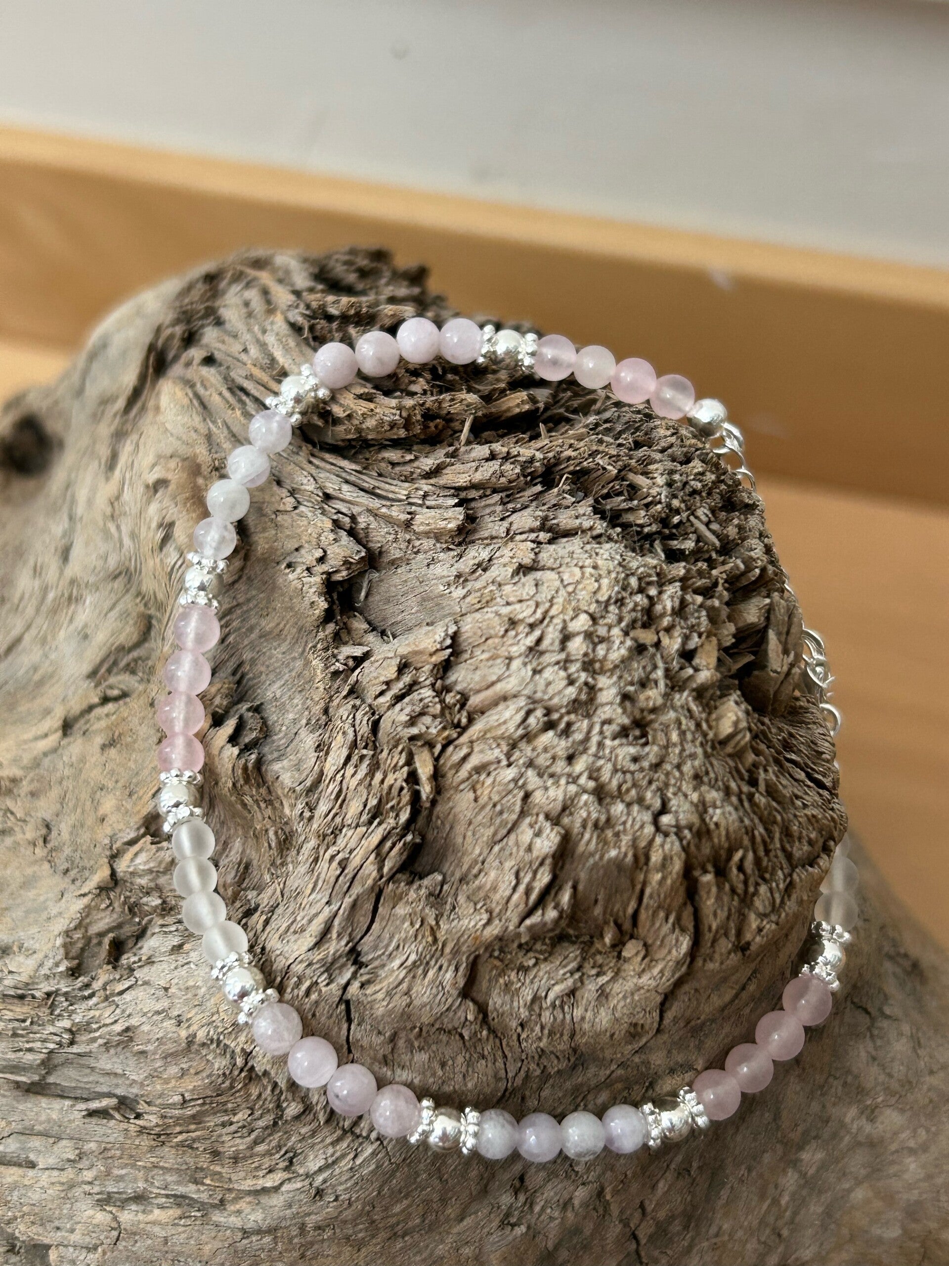 Heilstein: Amethyst hell, Bergkristall matt, Kunzit, Rosenquarz