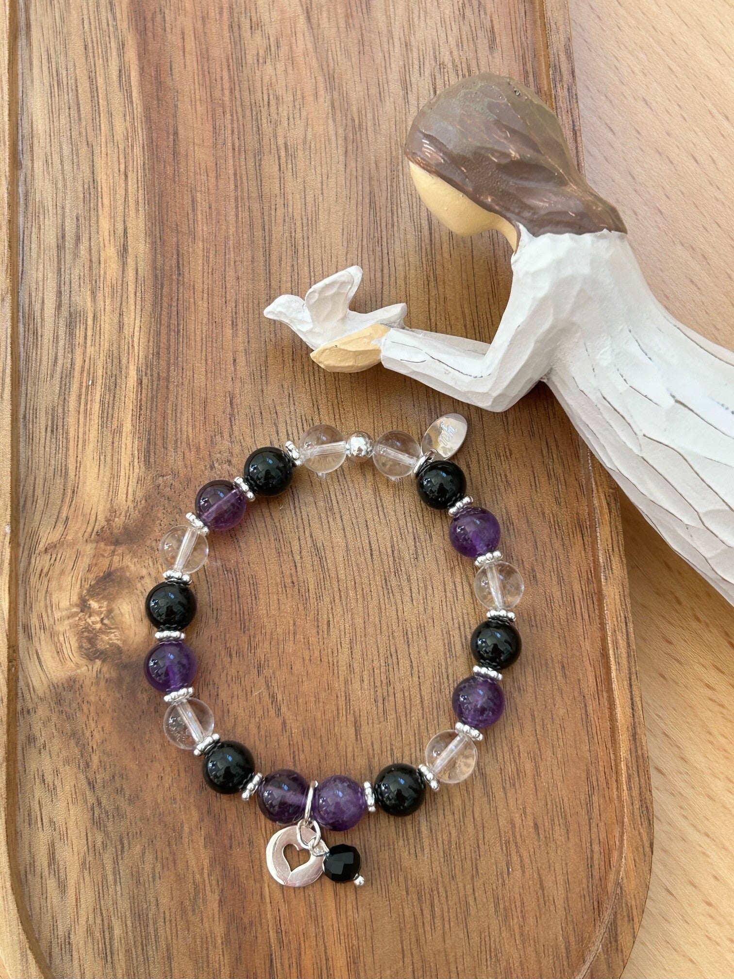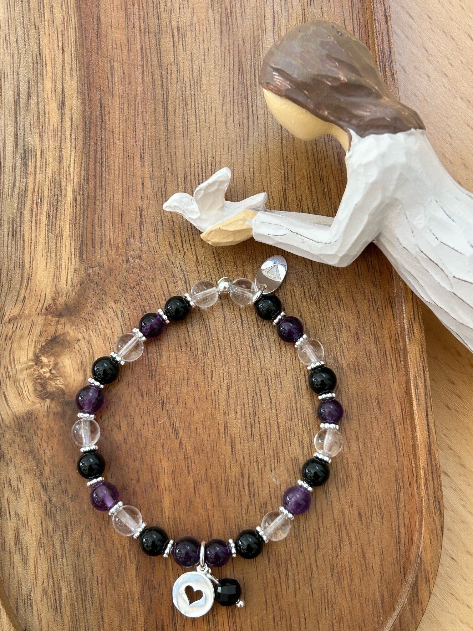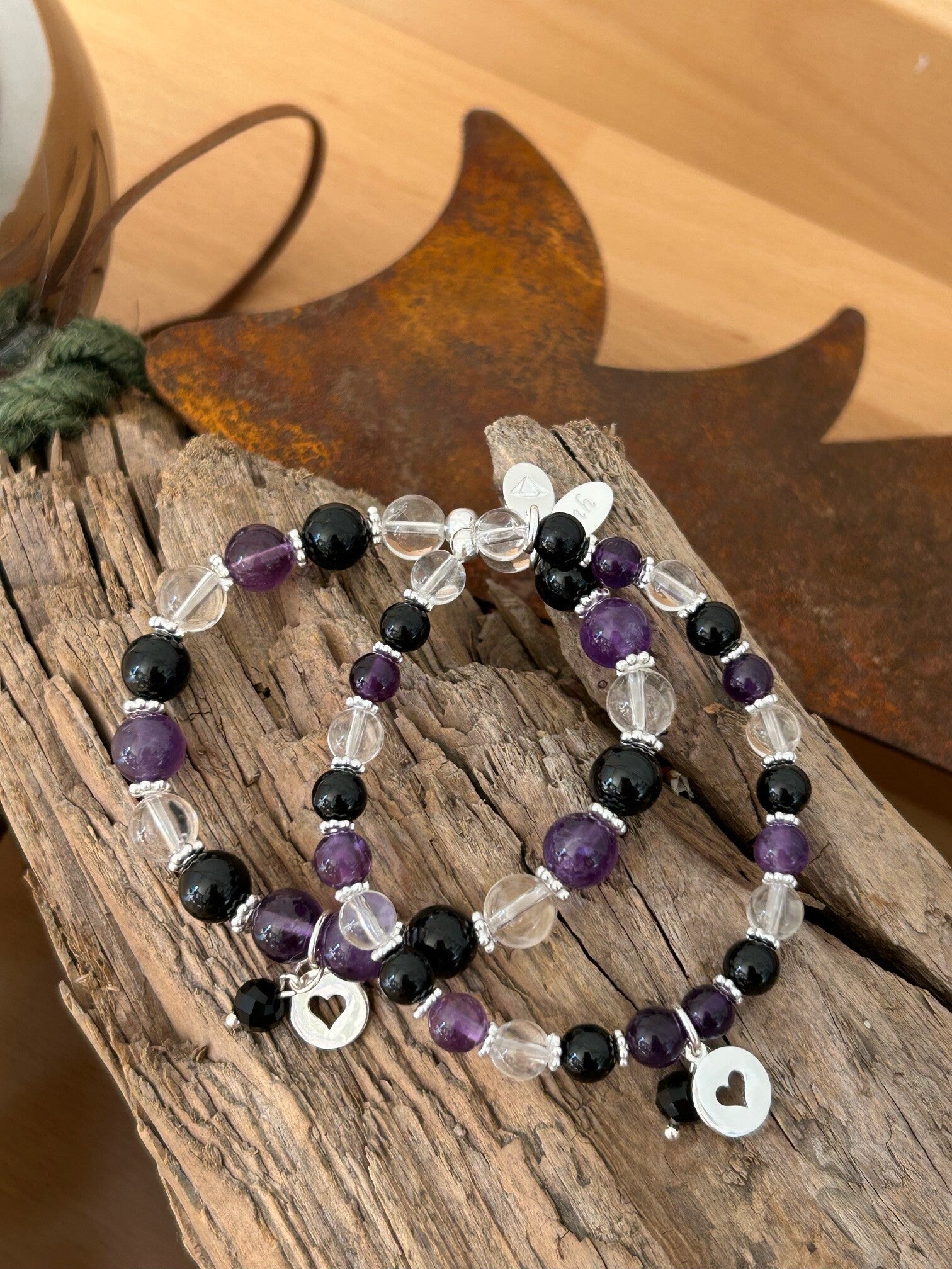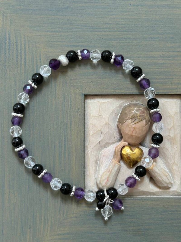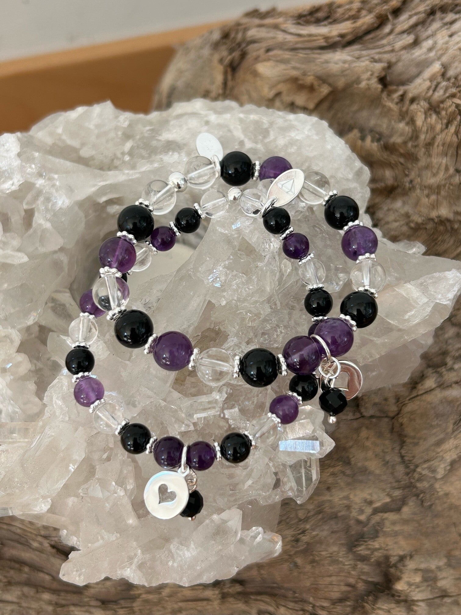 Heilsteine: Amethyst, Bergkristall, Onyx, Turmalin schwarz (Schörl)