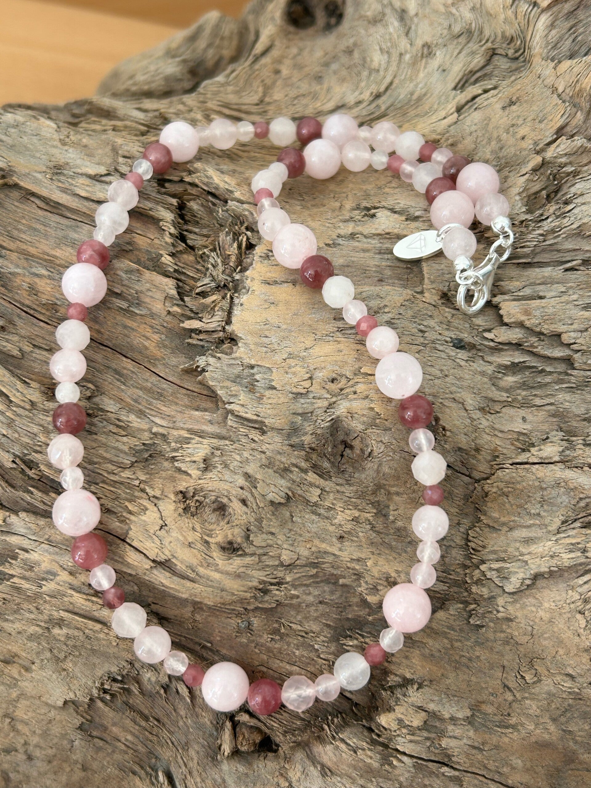 Rosenquarz: wirkt beruhigend; stärkt Herz und Blut; für Liebe und Romantik; hilft bei Schlaflosigkeit; dient als Strahlenschutz