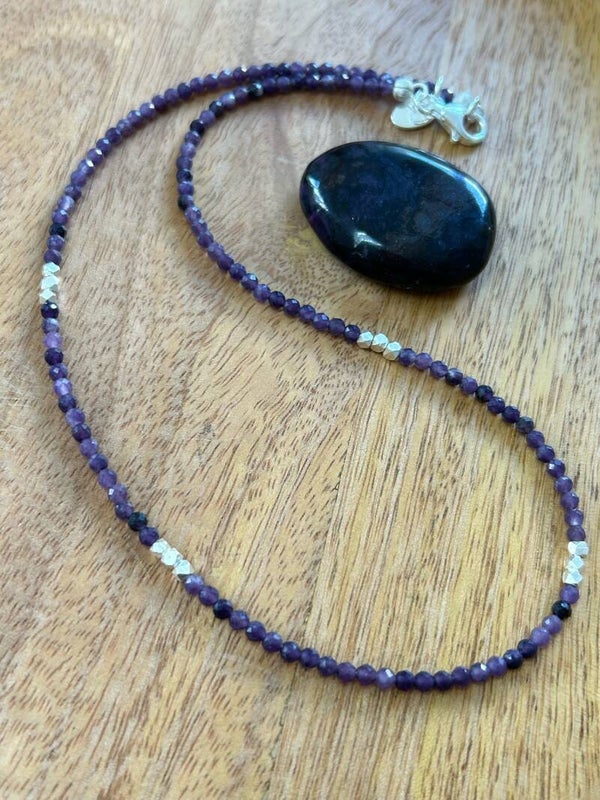 Sugilith: harmonisiert Nerven und Grosshirnrinde und hilft bei Psychosen Epilepsie Legasthenie und motorischen Störungen; hilft gegen Lähmungserscheinungen; lindert Schmerzen, sogar unerträgliche Zahn- und Kopfschmerzen; wird bei Bluterkrankungen, auch bei Leukämie verwendet; beseitigt Lymphstaus und lässt Ödeme verschwinden; hilft bei der Narbenentstörung; bringt den gesamten Stoffwechsel in Gang und fördert alle Organfunktionen; hilft bei jeder Form von Angst; befähigt kompromisslos Konflikte zu lösen und die Wahrheit zu ermitteln; lässt Unangenehmes leichter ertragen; hilft bei psychiiatrischen Störungen; hilft bei Überwältigung von Negativität; lehrt Veränderungen anzunehmen; aktiviert gleichermassen Sexual- und Überlebenstrieb wie Geist und Erkenntnisdrang.