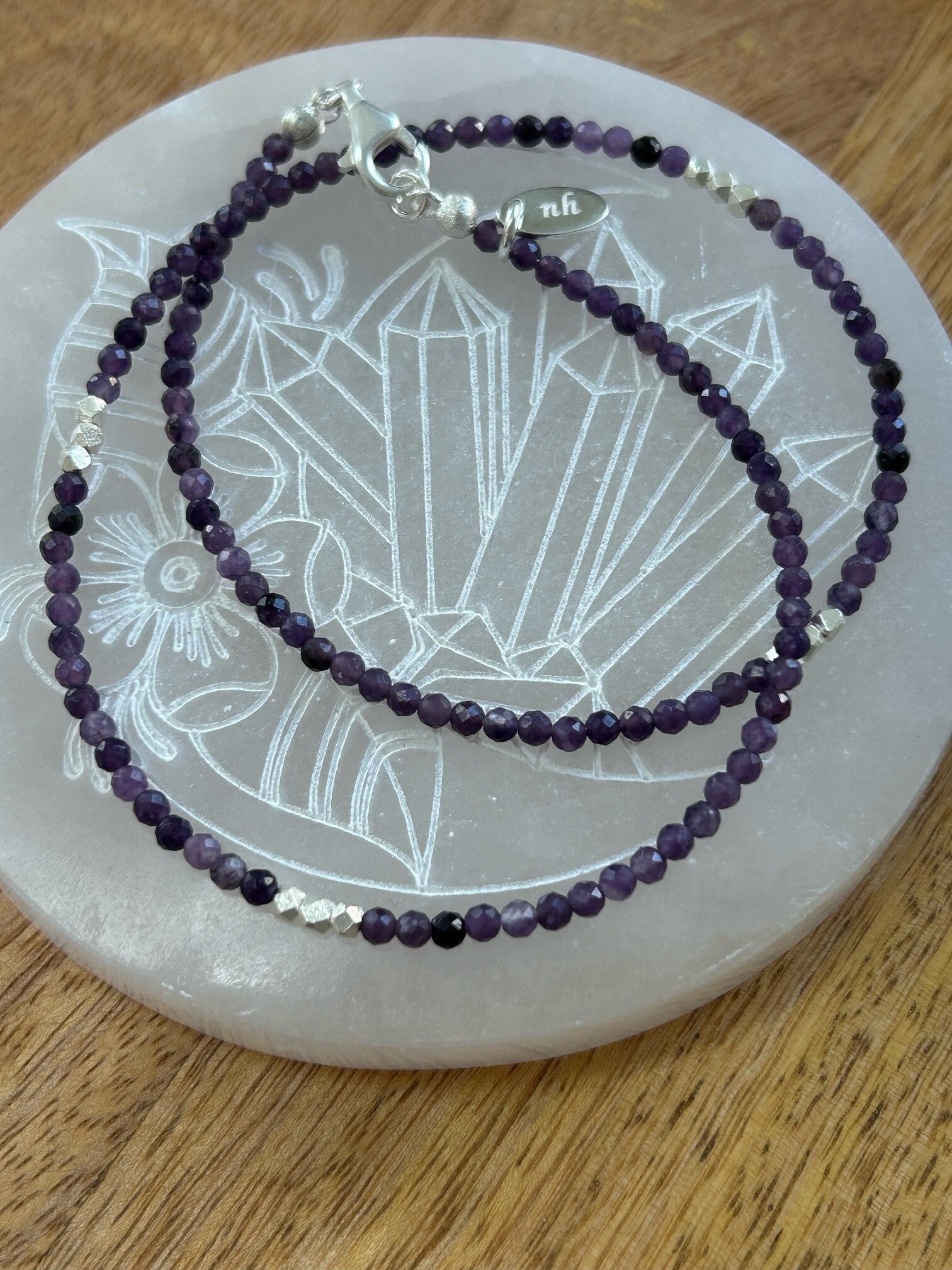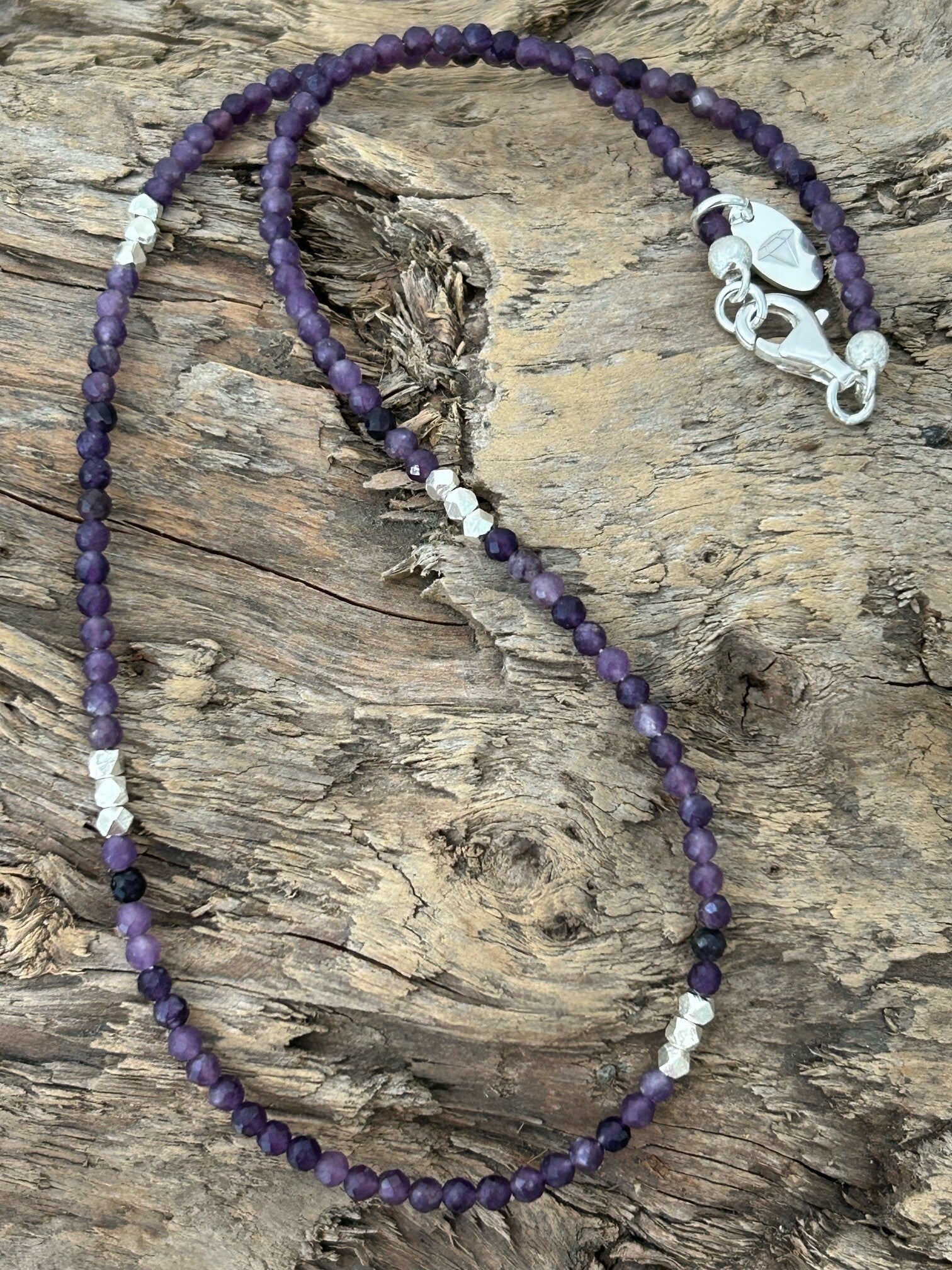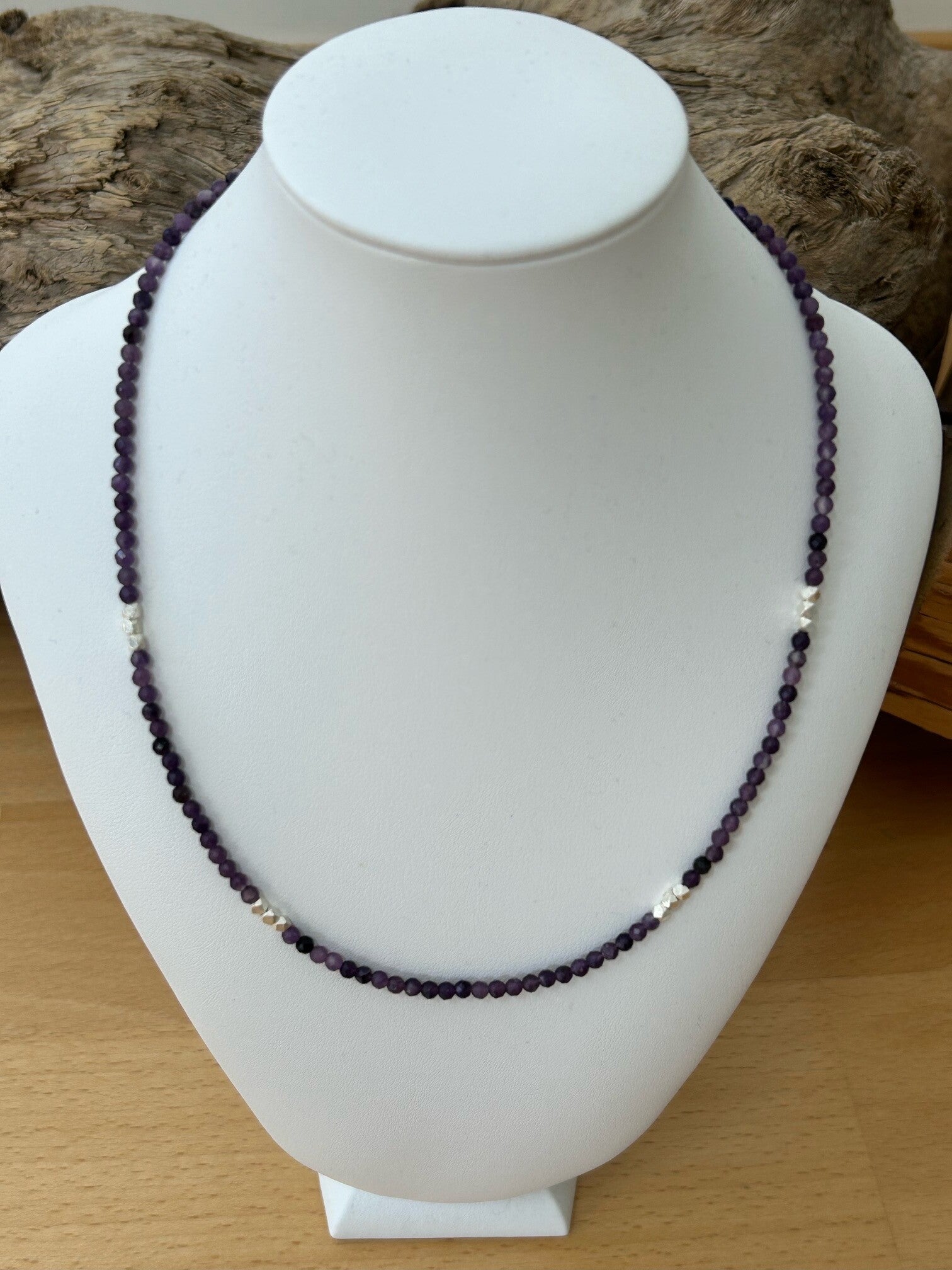 Länge auf diesem Bild: 43cm (Bitte die genaue Wunschlänge im Kommentar eintragen und die entsprechende Preisklasse wählen); Silber 925 facettierte Würfel und Verschluss; Kugeln 3mm facettiert