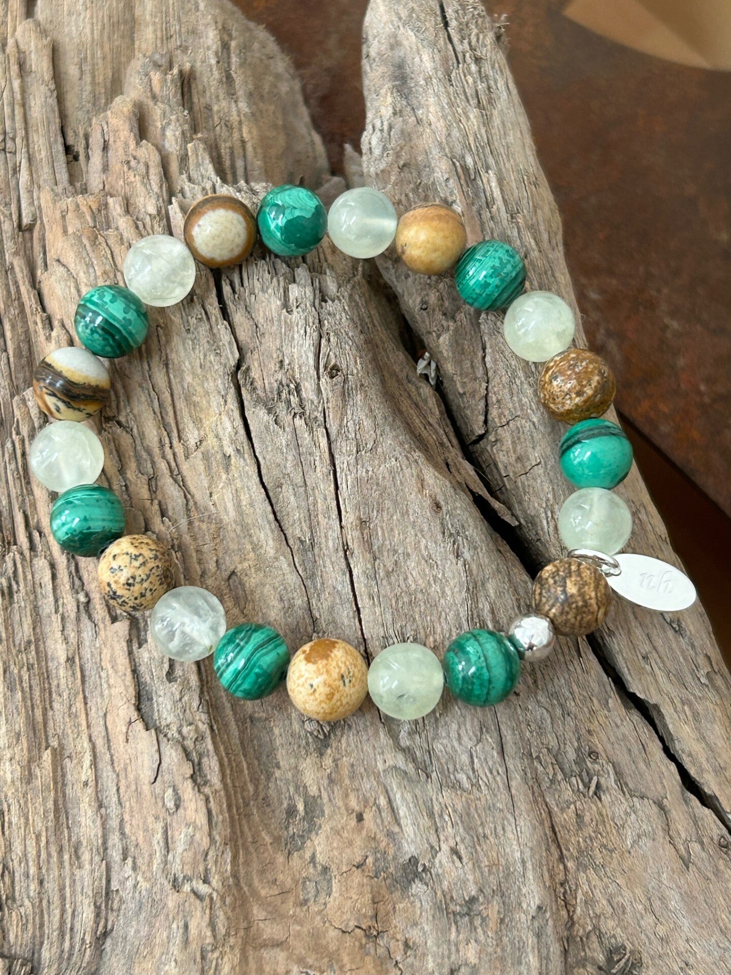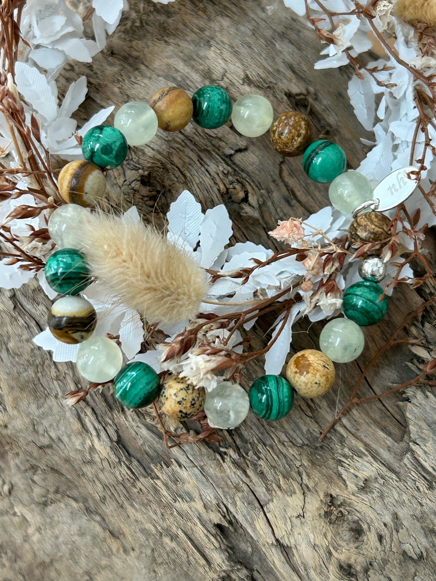 Heilsteine (Link zu Beschreibung und Wirkung): Landschaftsjaspis, Malachit, Prehnit