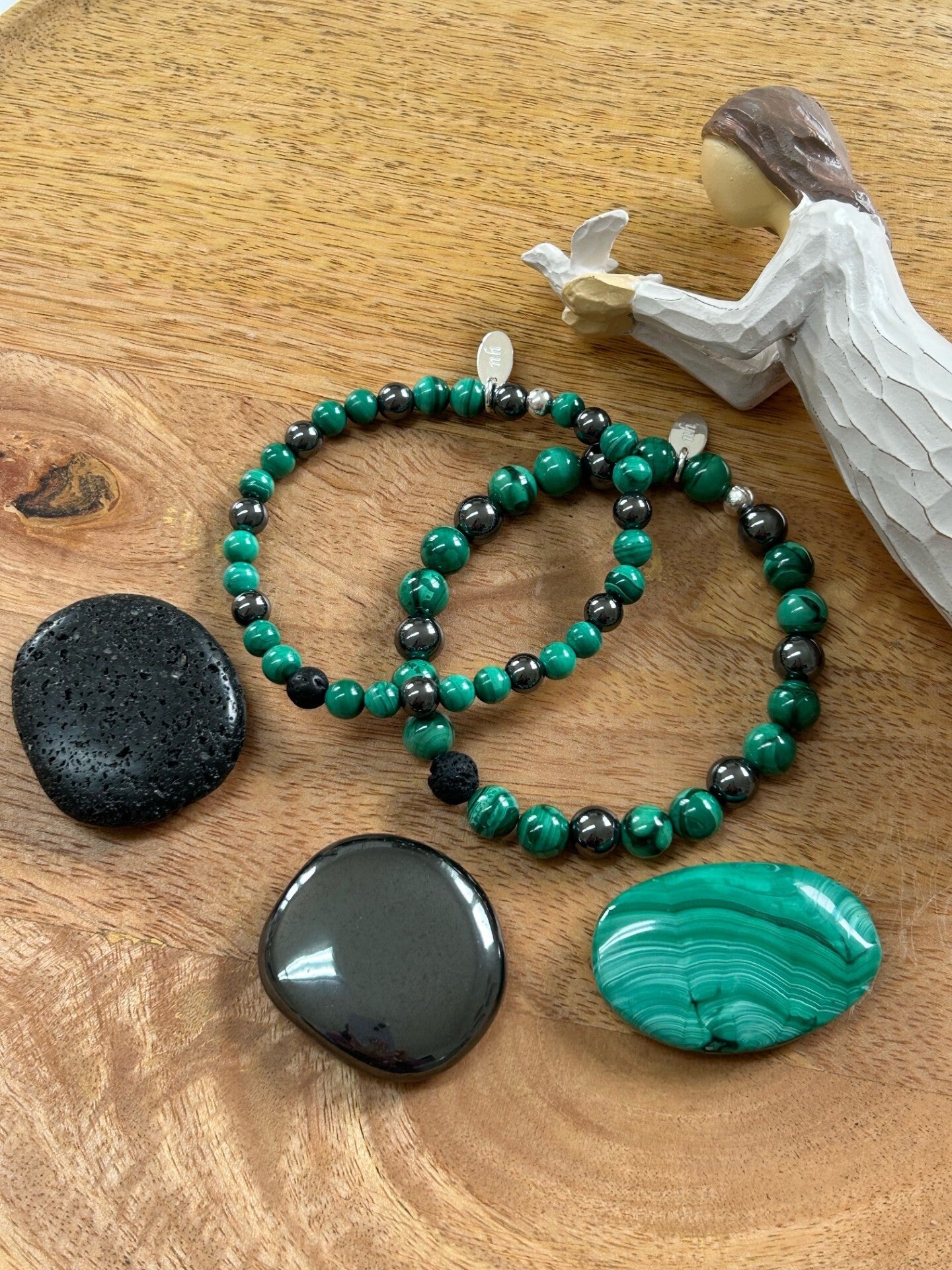 Heilsteine: Hämatit, Lava / Basalt, Malachit