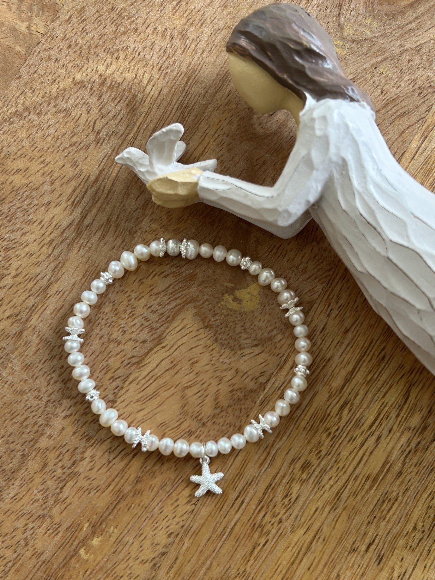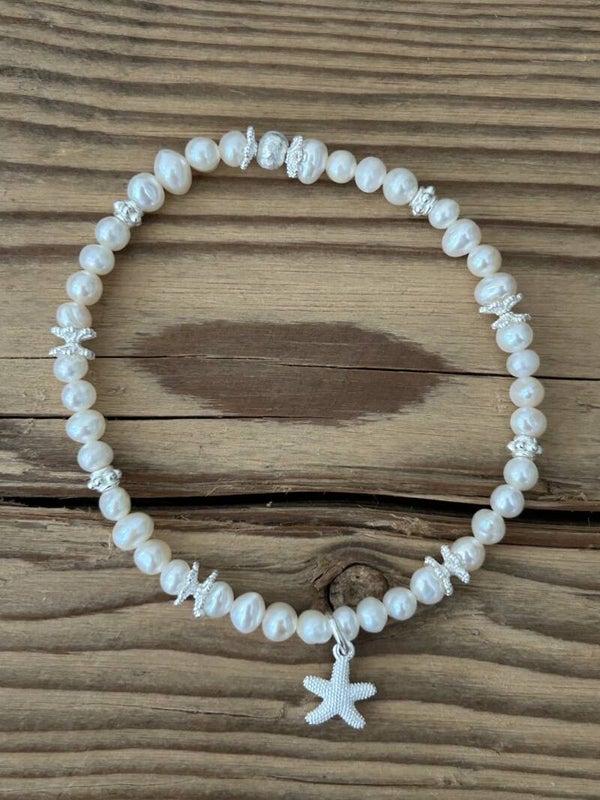 Hinweis: mit Stretch-Band; Silber 925 Anhänger "Seestern" und Elemente; Kugeln 4mm