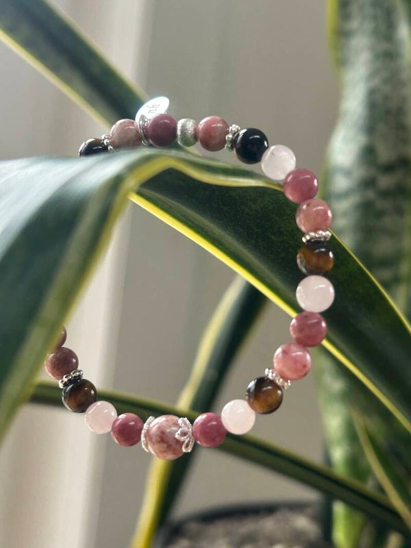 Heilsteine: Rhodonit, Rosenquarz, Thulit, Tigerauge
