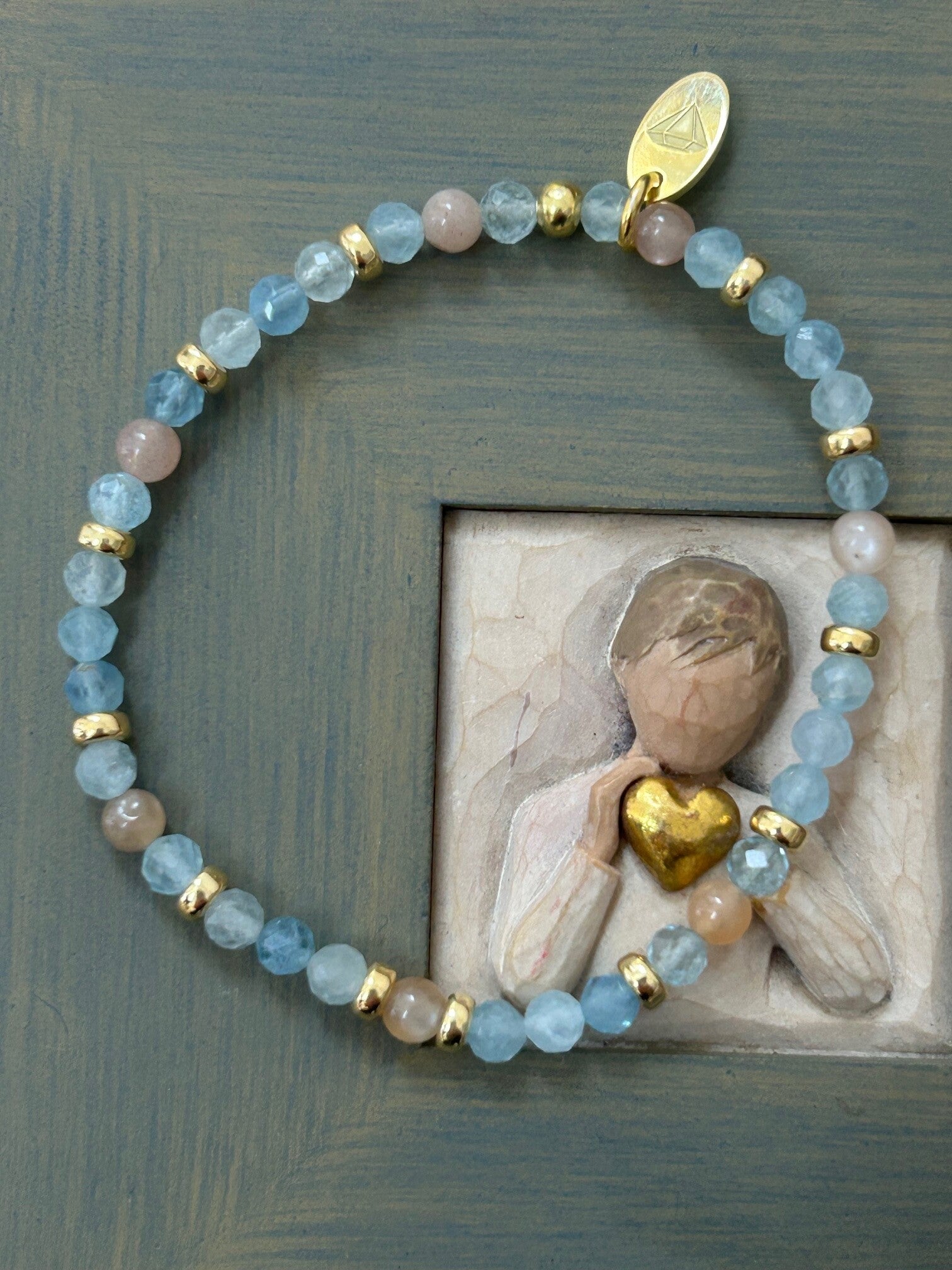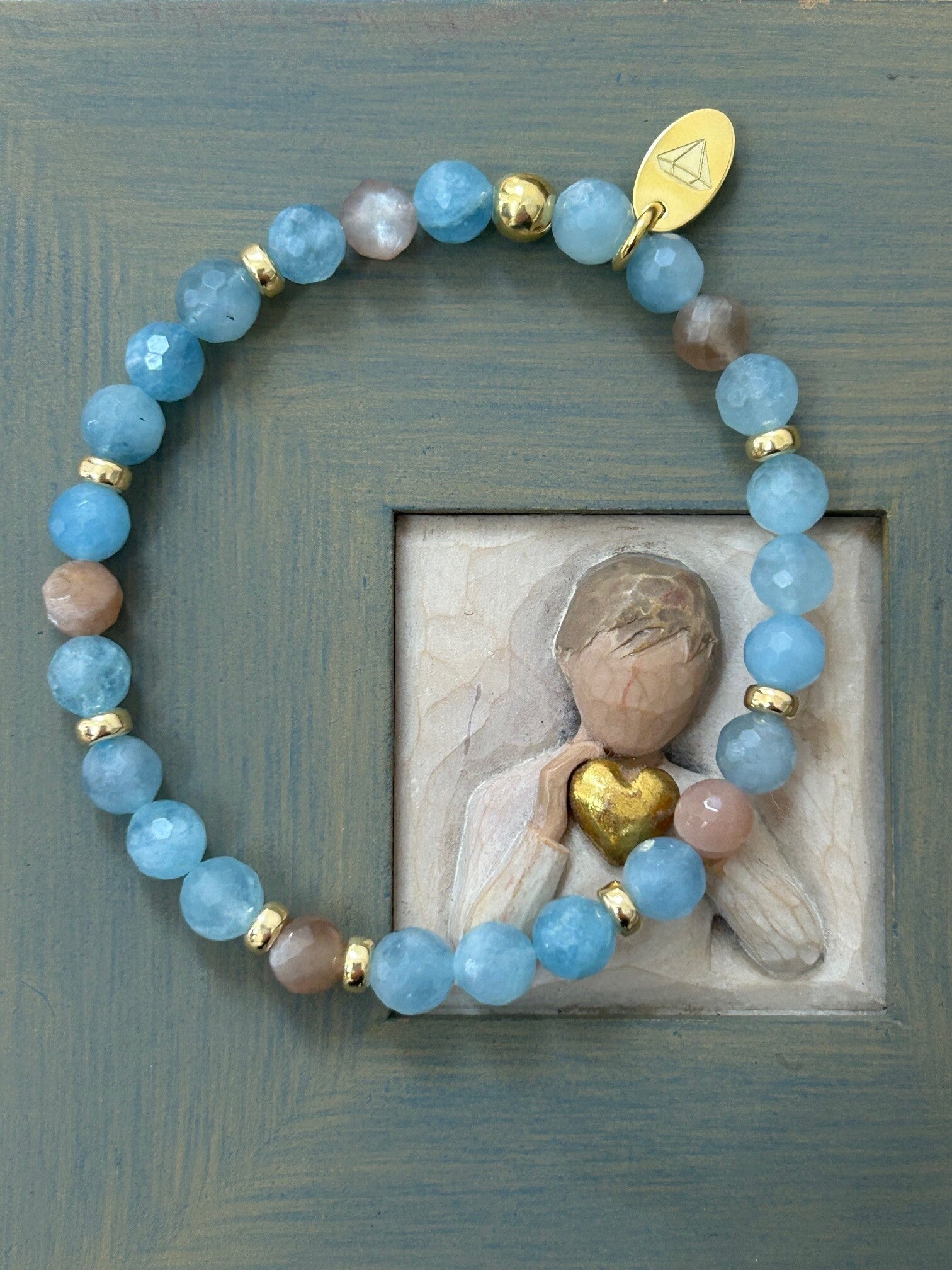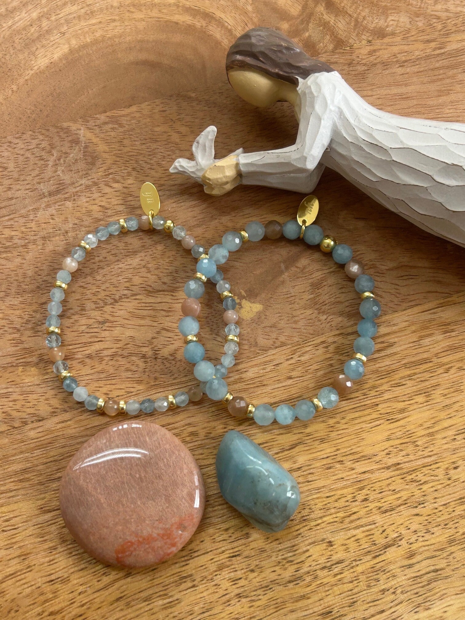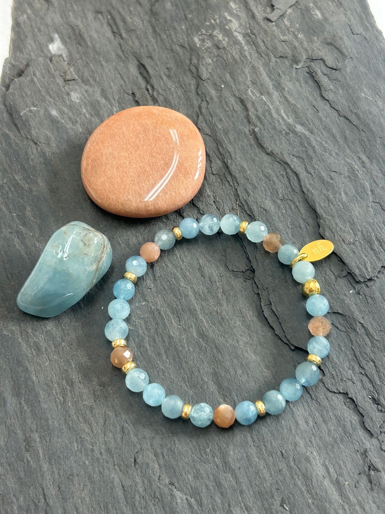 Heilsteine: Beryll blau (Aquamarin) , Mondstein bunt