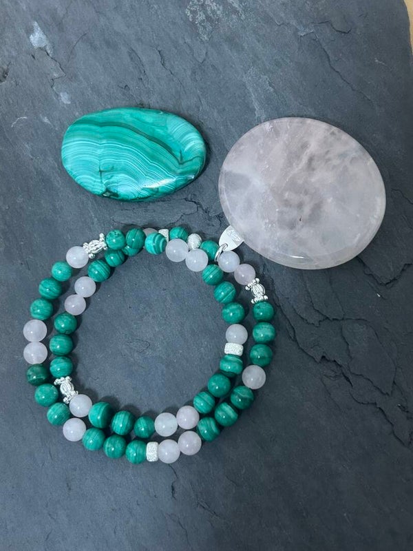 Wickelarmband (2-fach) - Malachit & Rosenquarz (A560)