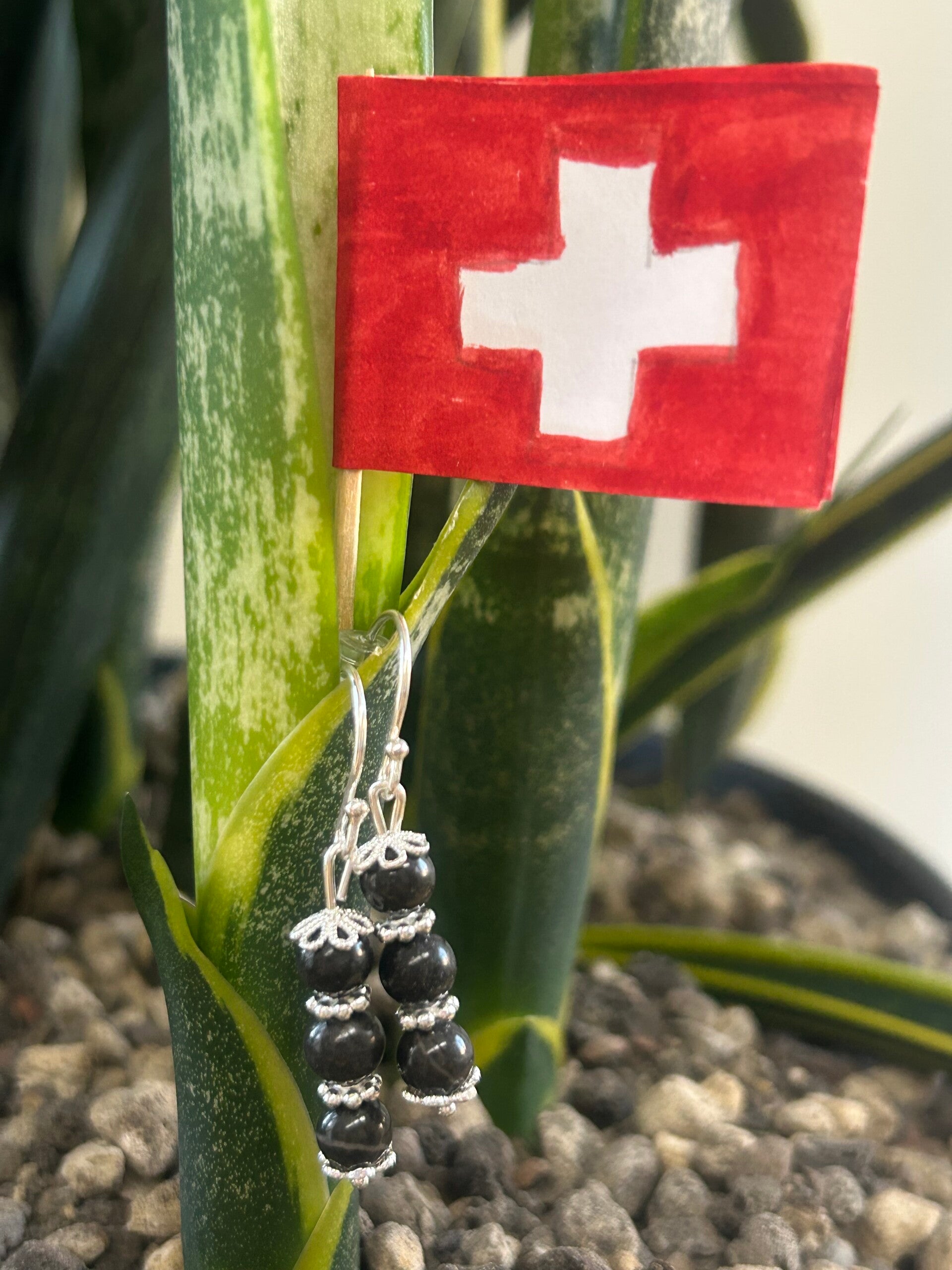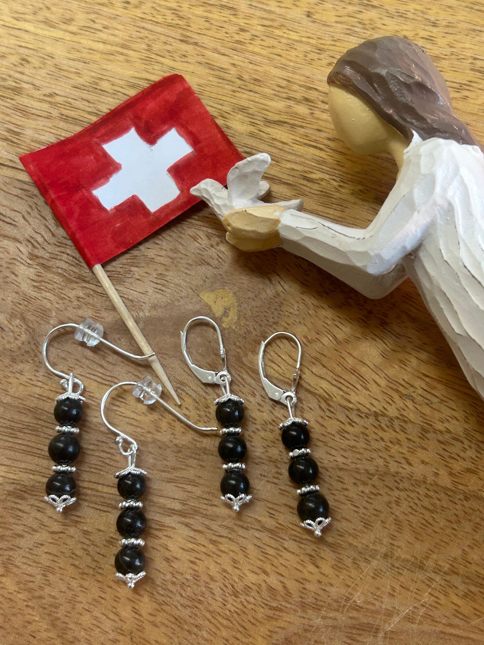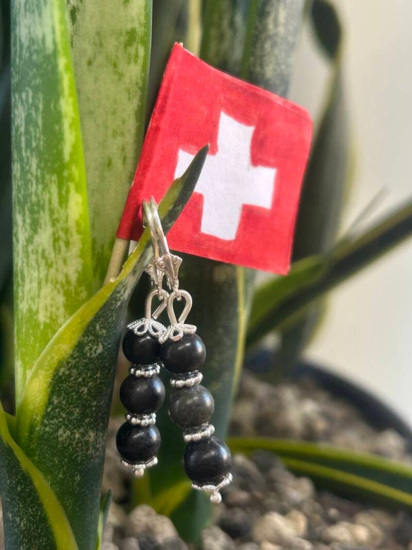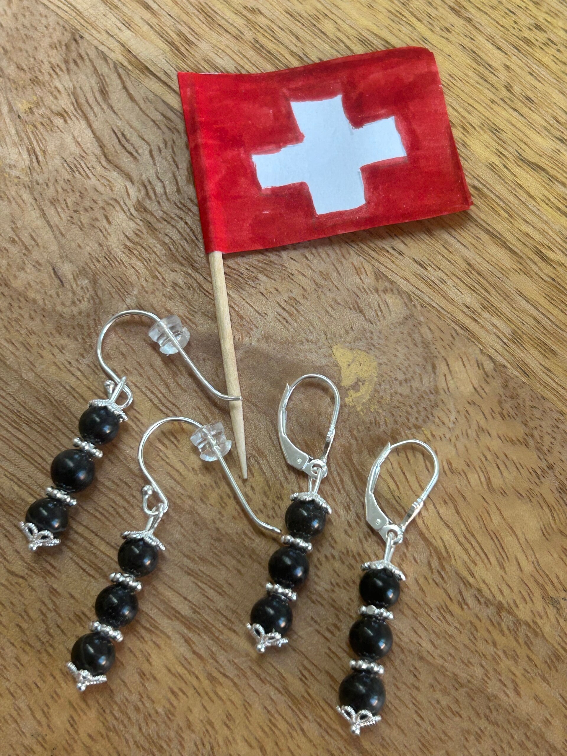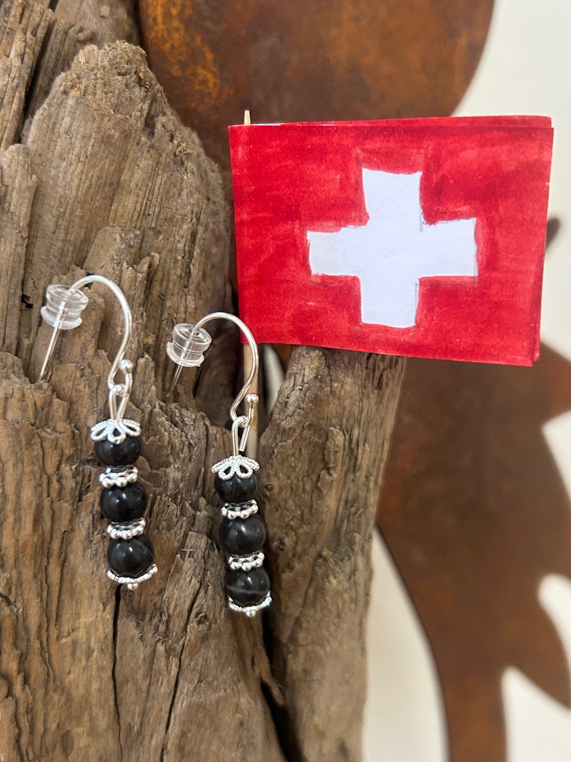 Länge: 3 cm; Silber 925 Perlkappen, Elemente und Verschluss; Kugeln 6 mm
