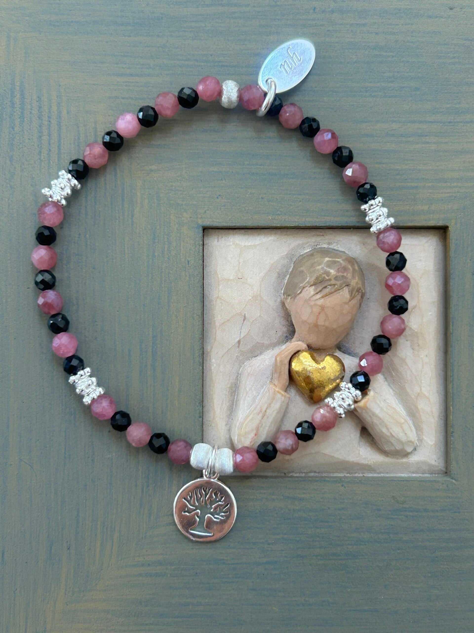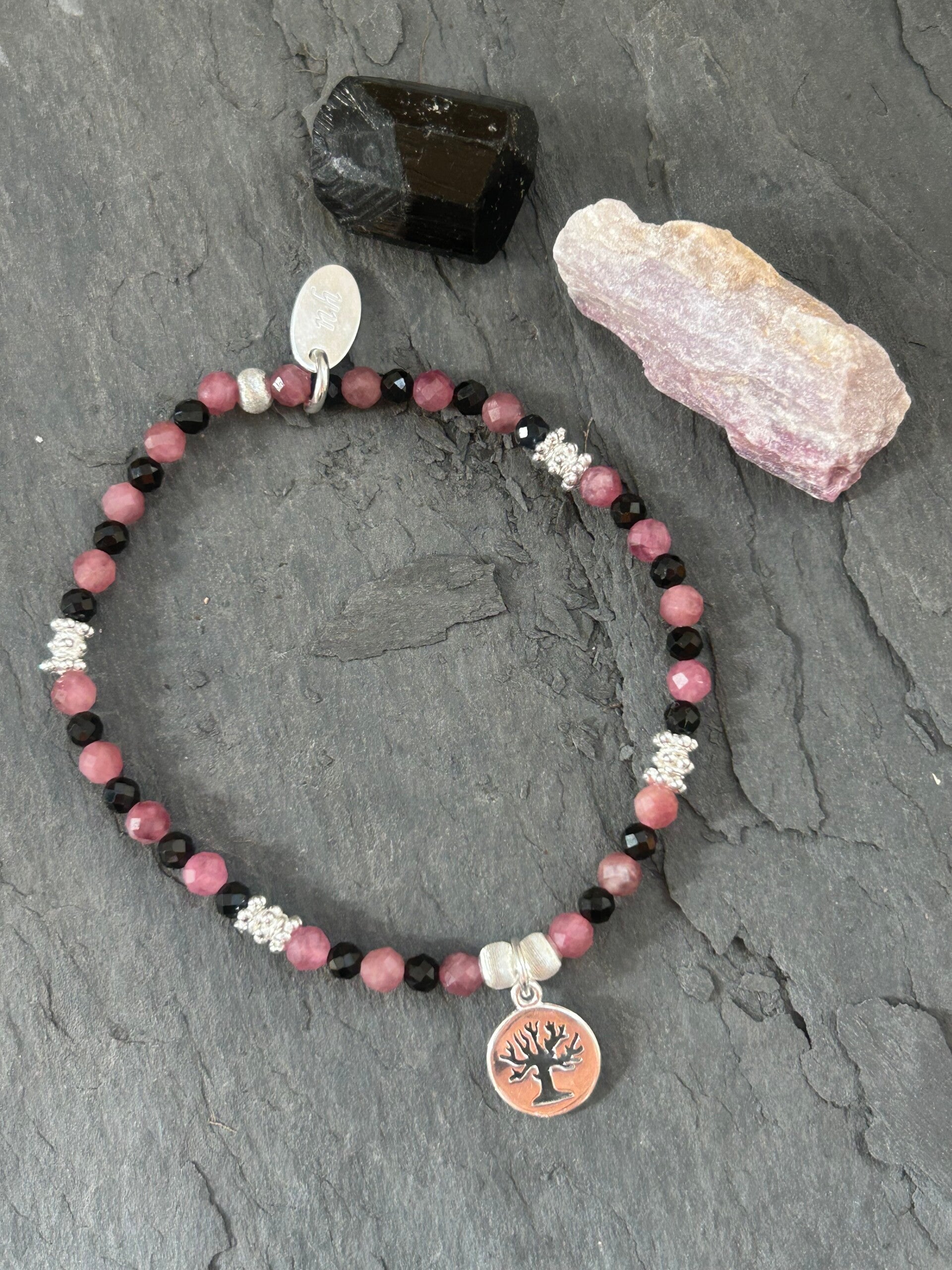 Hinweis: mit Stretch-Band; Silber 925 Anhänger "Lebensbaum" und Elemente; Kugeln 3 und 4mm facettiert