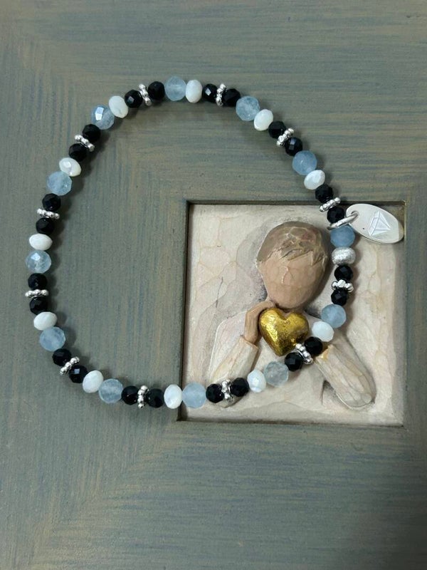 Armband - Aquamarin, Perlmutt & Turmalin Schörl (A567)