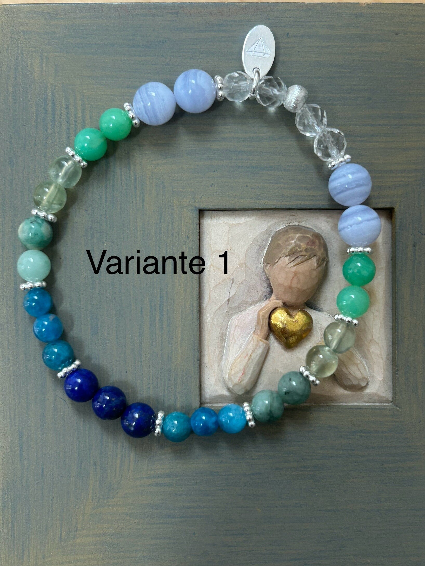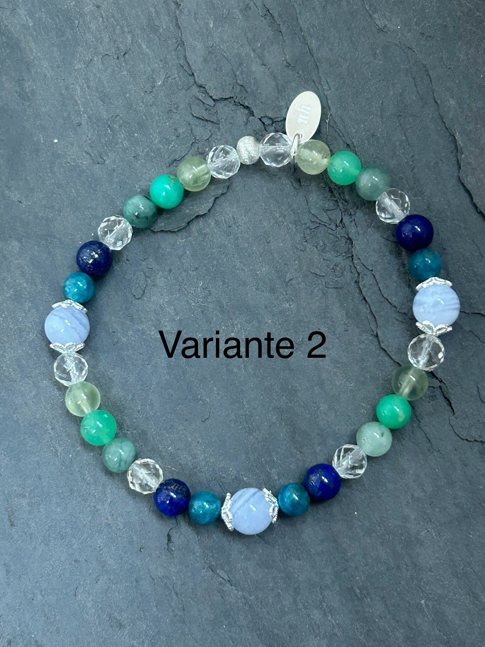 Heilsteine: Apatit blau, Bergkristall, Chalcedon blau Top-Qualität, Chrysopras, Lapislazuli, Prehnit, Smaragd (Beryll grün)