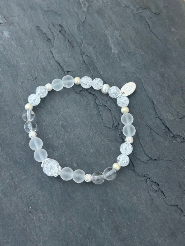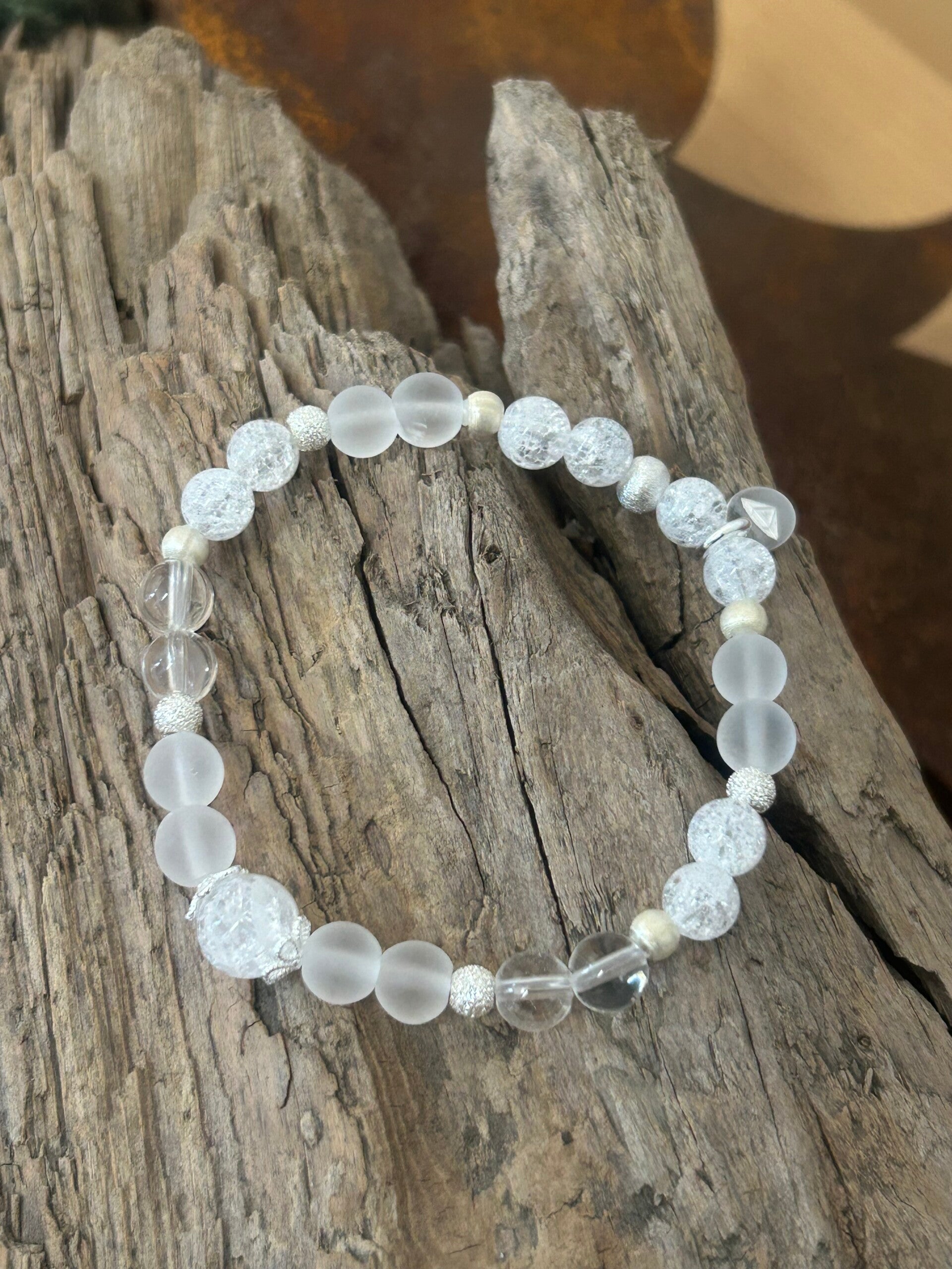 Hinweis: mit Stretch-Band; Silber 925 matt diamantierte Elemente; Kugeln 6 und 8mm, 6mm matt