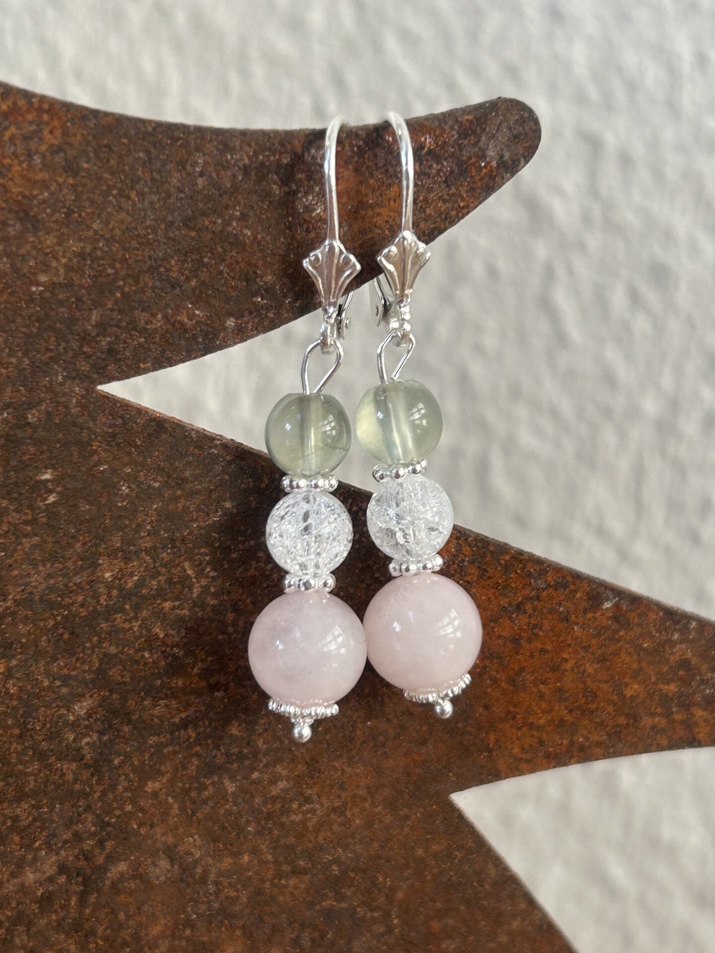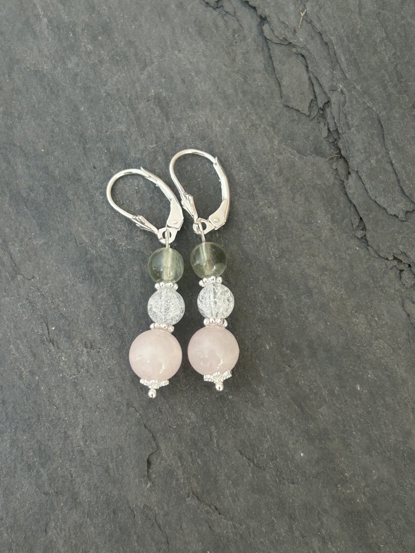 Ohrringe - Bergkristall, Prehnit & Rosenquarz (O474)