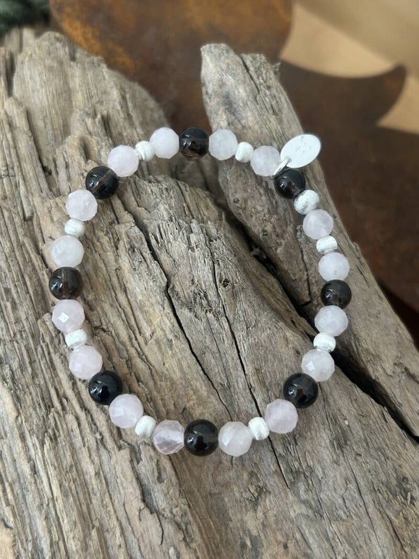 Armband - Rauchquarz & Rosenquarz (A588)
