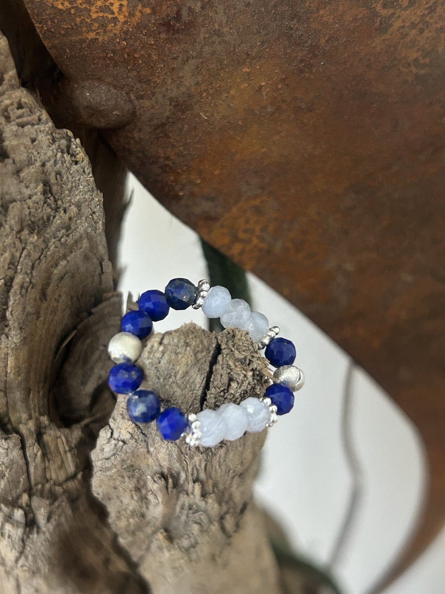 Fingerring - Chalcedon blau & Lapislazuli (R076)