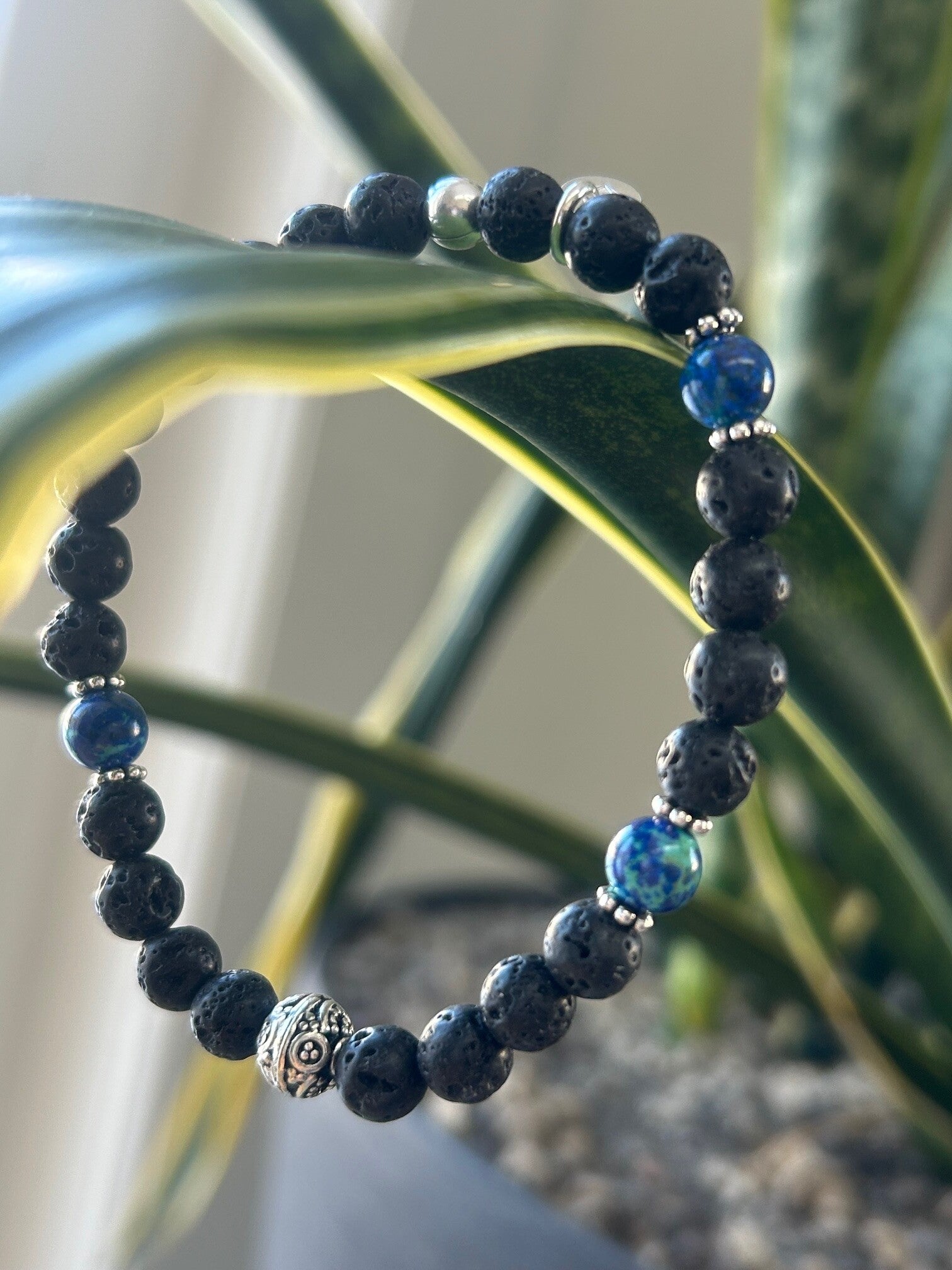 Männer-Armband - Azurit-Malachit & Lava (A589)