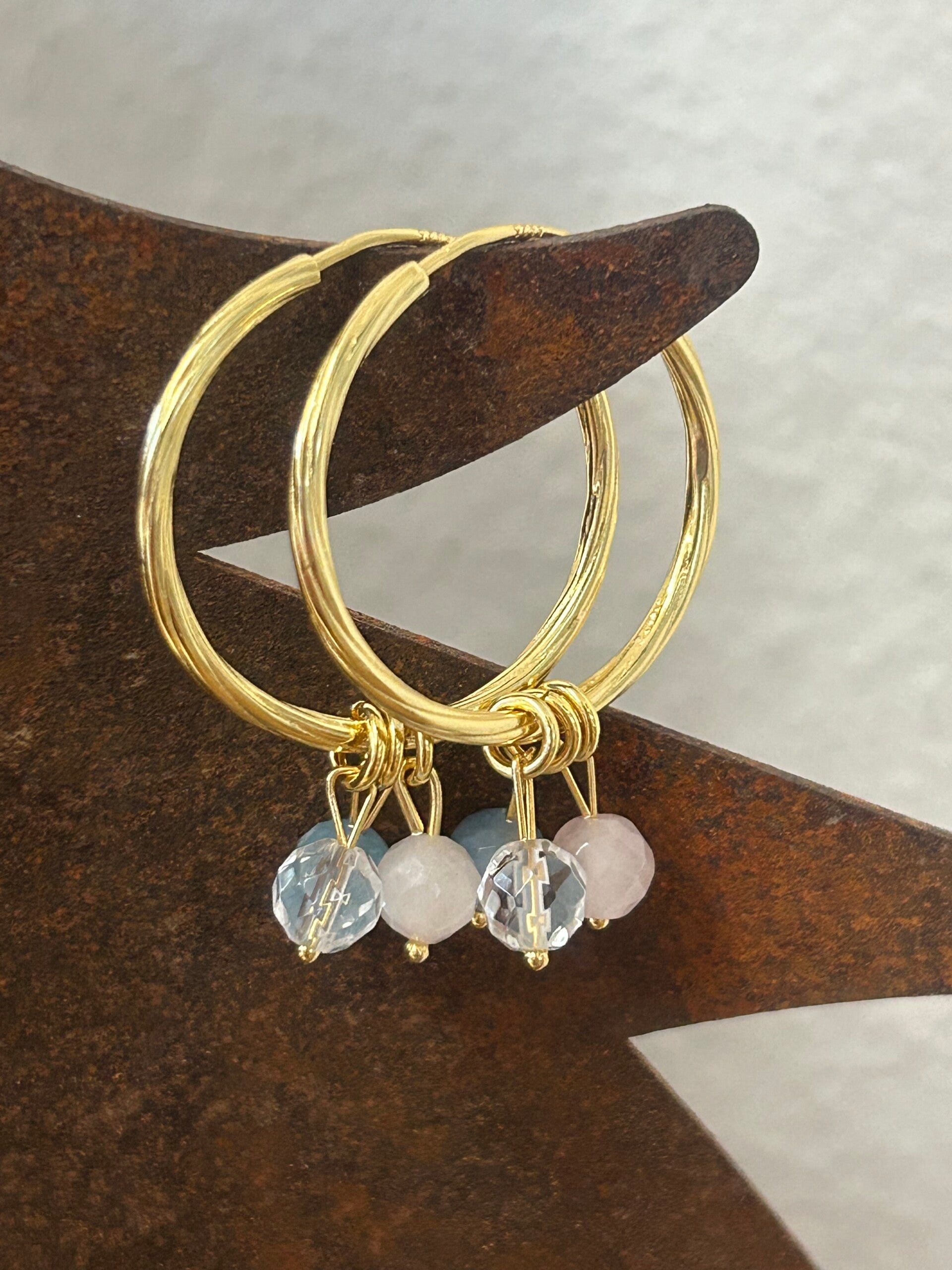 Durchmesser Creolen: 3cm; Länge Stein Anhänger: 1cm; Silber 925 respektive Silber 925 vergoldete Creolen und Anhänger wählbar; Kugeln 6mm facettiert