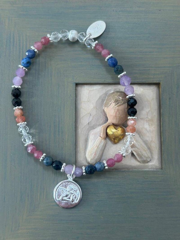 Hinweis: mit Stretch-Band; Silber 925 Anhänger "Engel" und Elemente; Kugeln 4mm facettiert