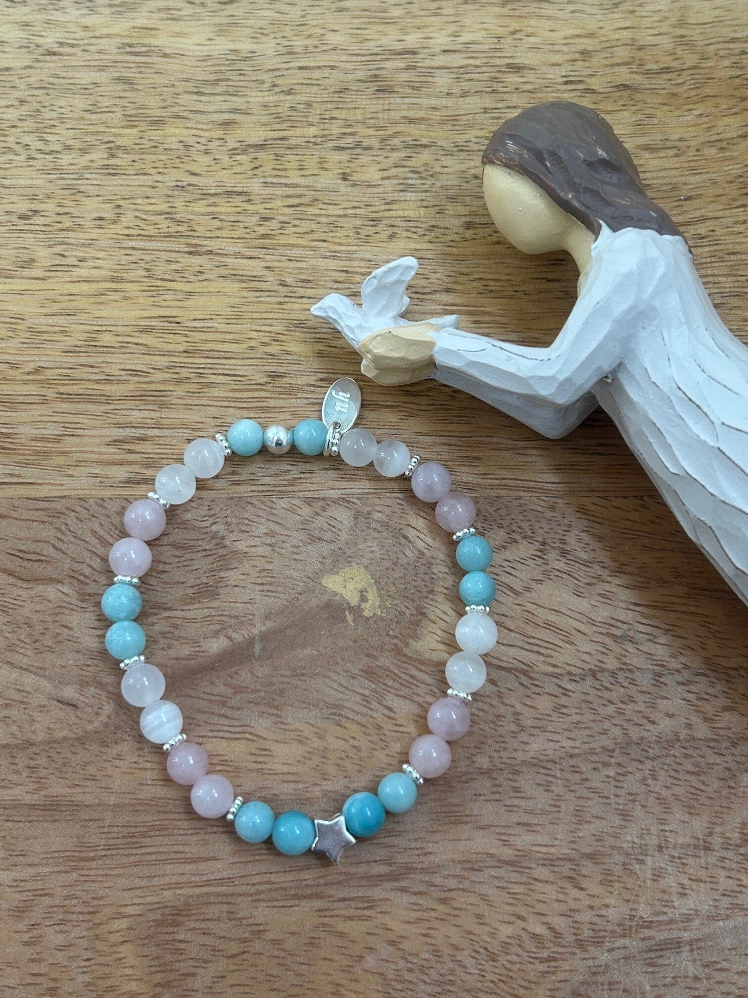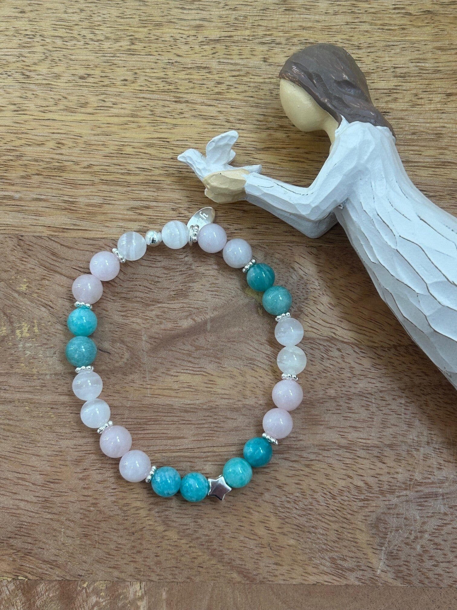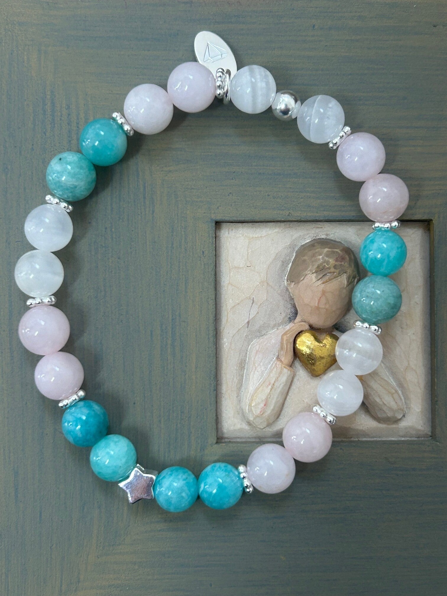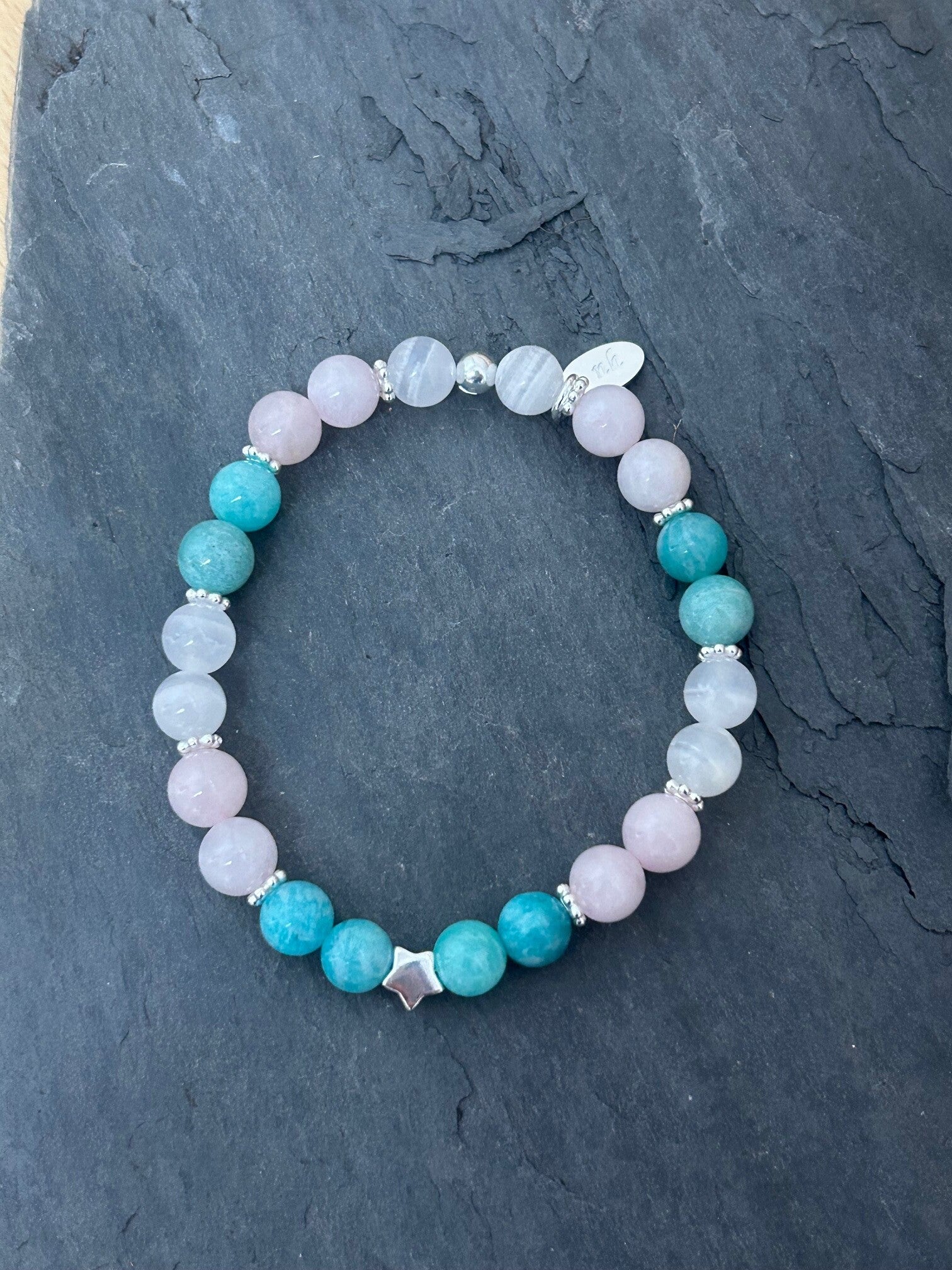 Heilsteine (Link zu Beschreibung und Wirkung): Amazonit, Mangano-Calcit, Rosenquarz