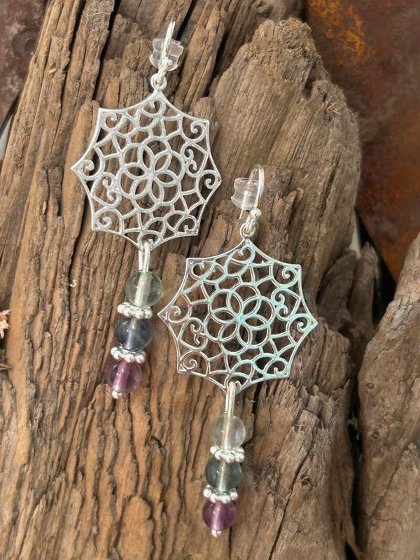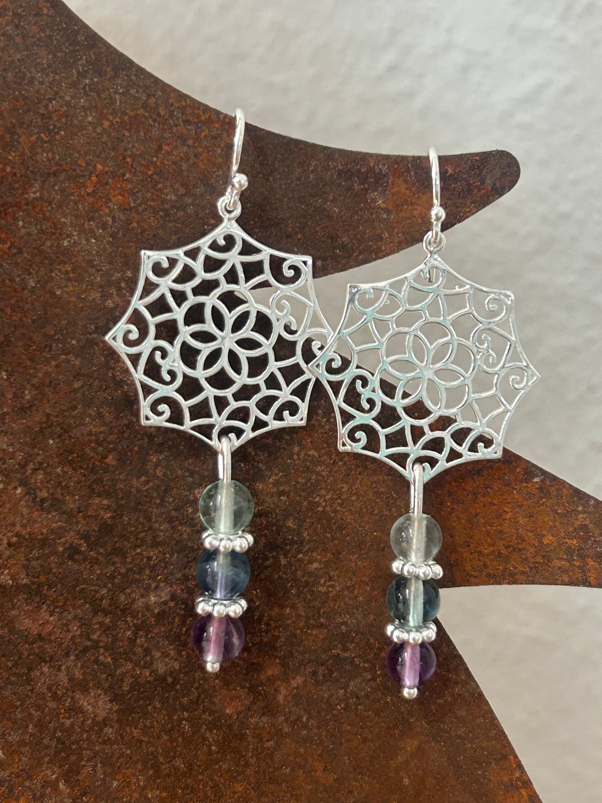 Länge: 6cm; Silber 925 Anhänger "Mandala", Elemente und Verschluss; Kugeln 6mm
