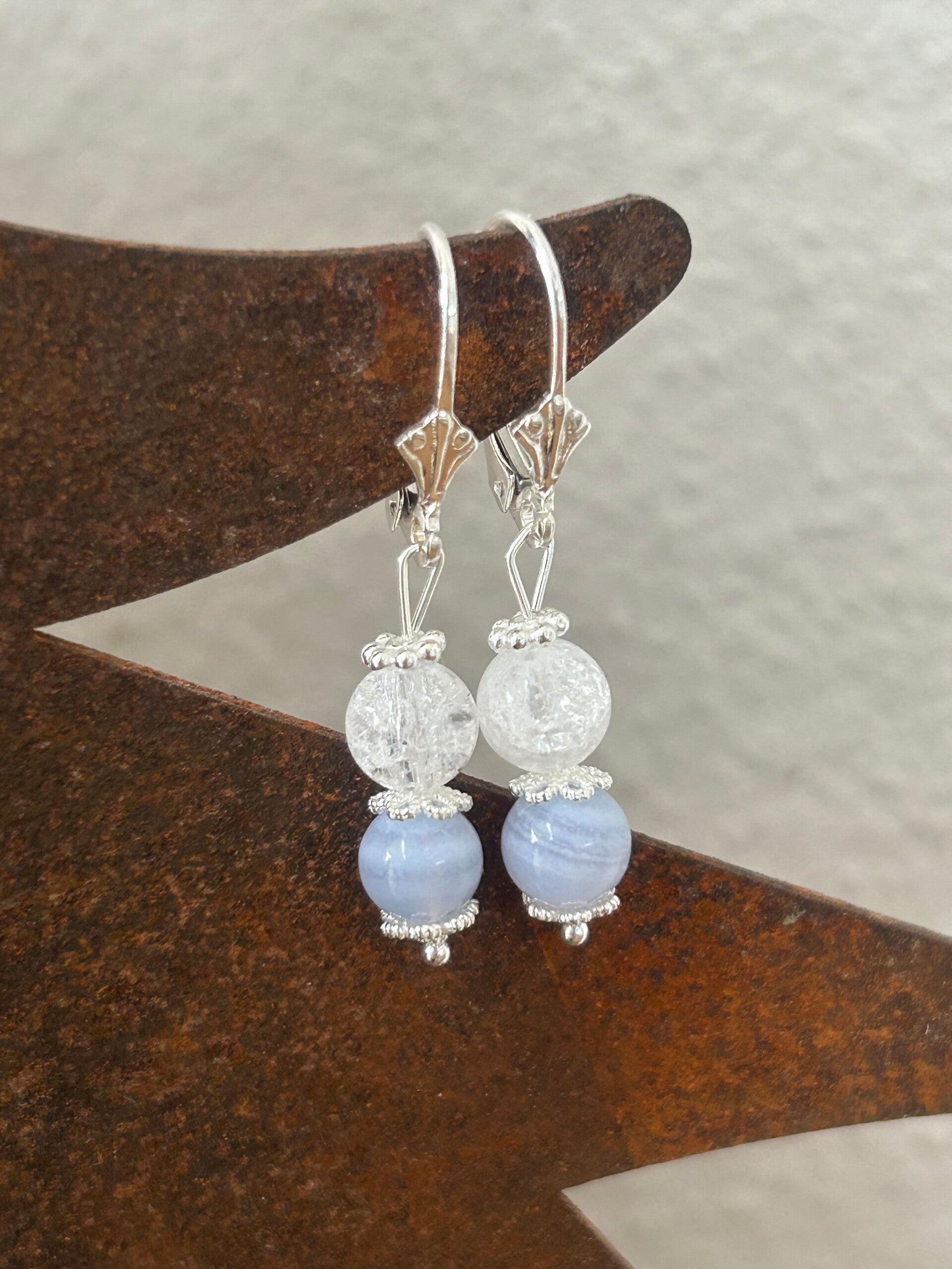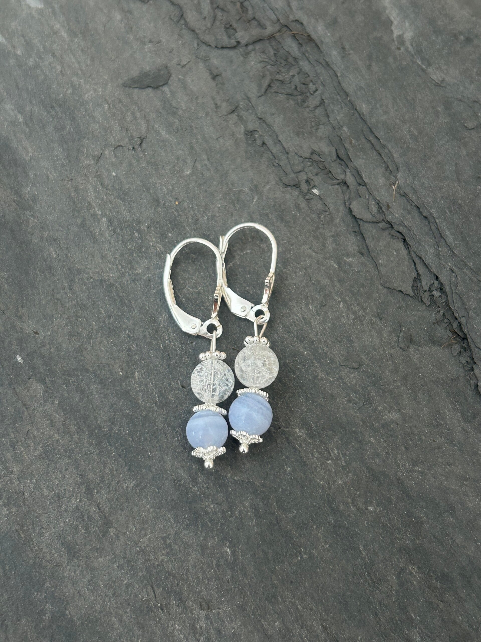 Ohrringe - Bergkristall & Chalcedon blau (O482)