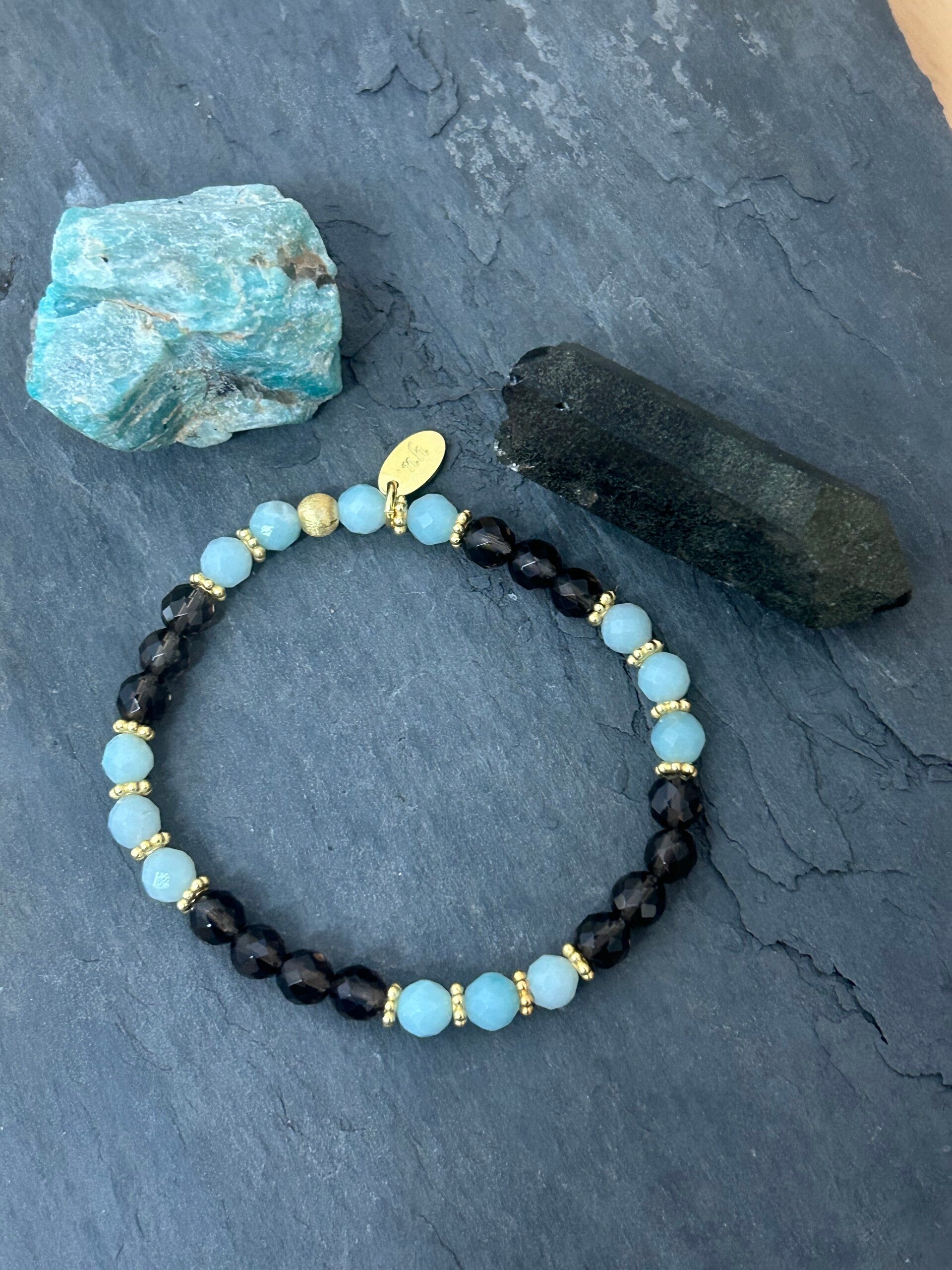 Heilsteine (Link zu Beschreibung und Wirkung): Amazonit, Rauchquarz