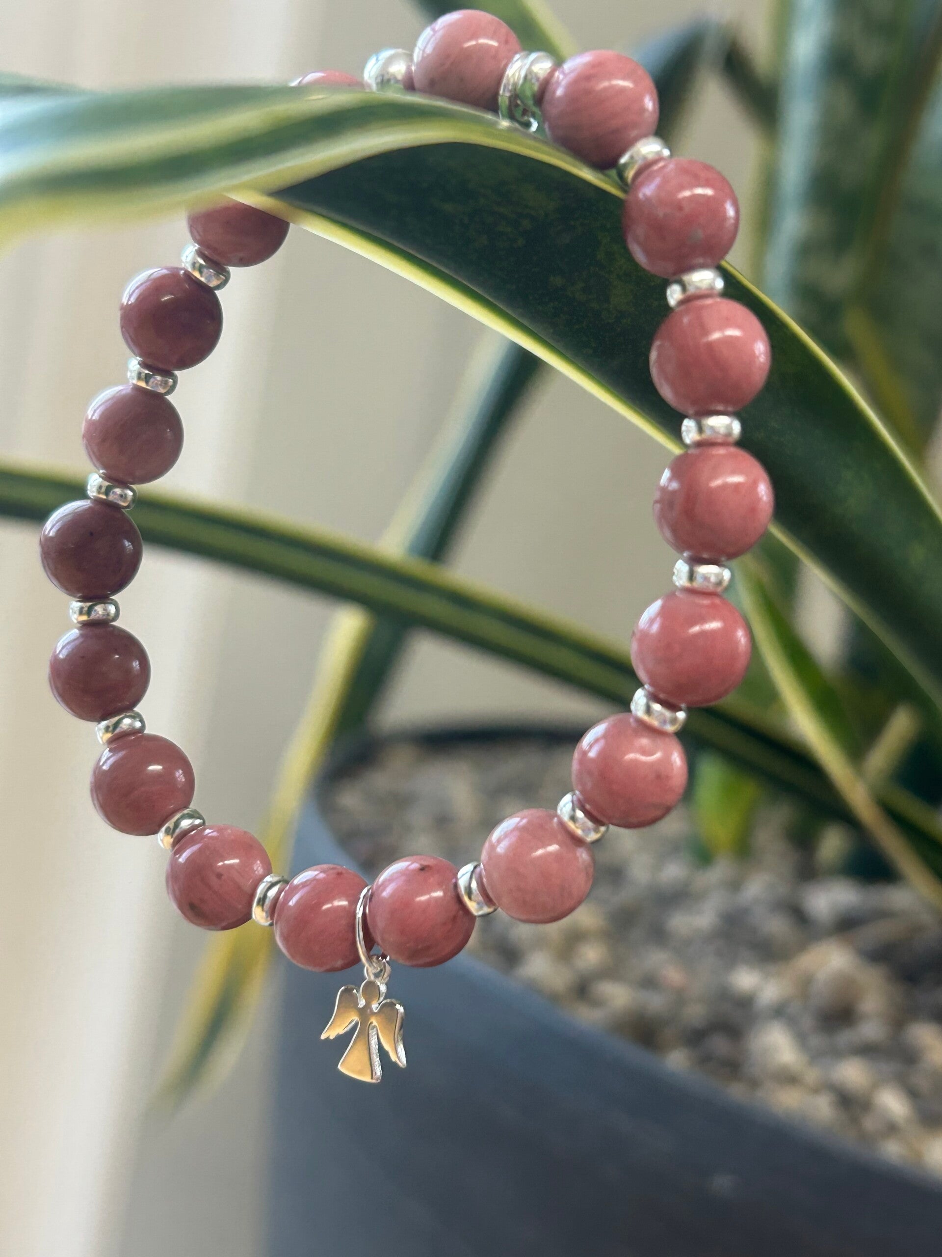 Hinweis: mit Stretch-Band; Silber 925 Anhänger "Engel" (10x8mm) und Elemente; Kugeln 8mm