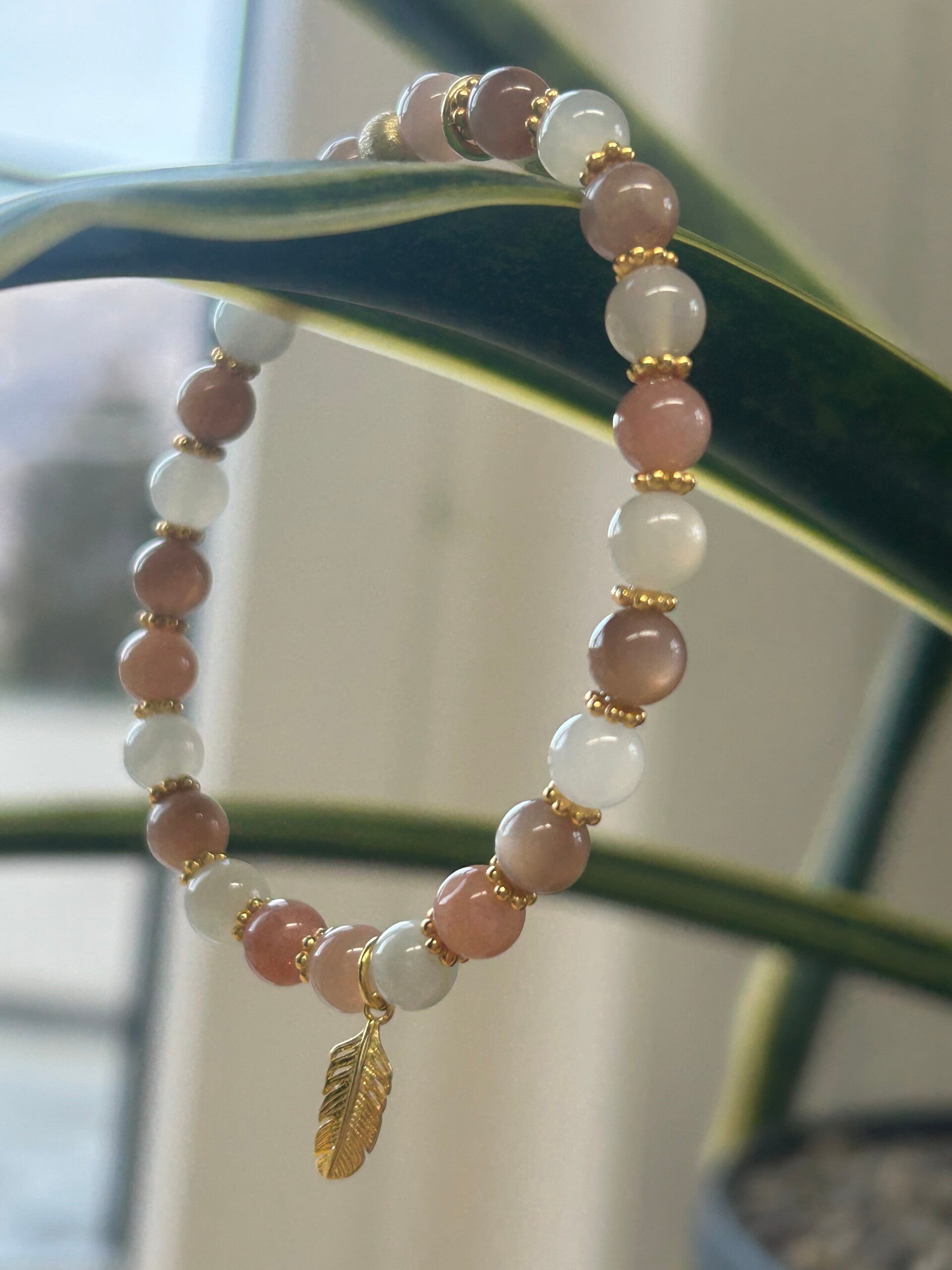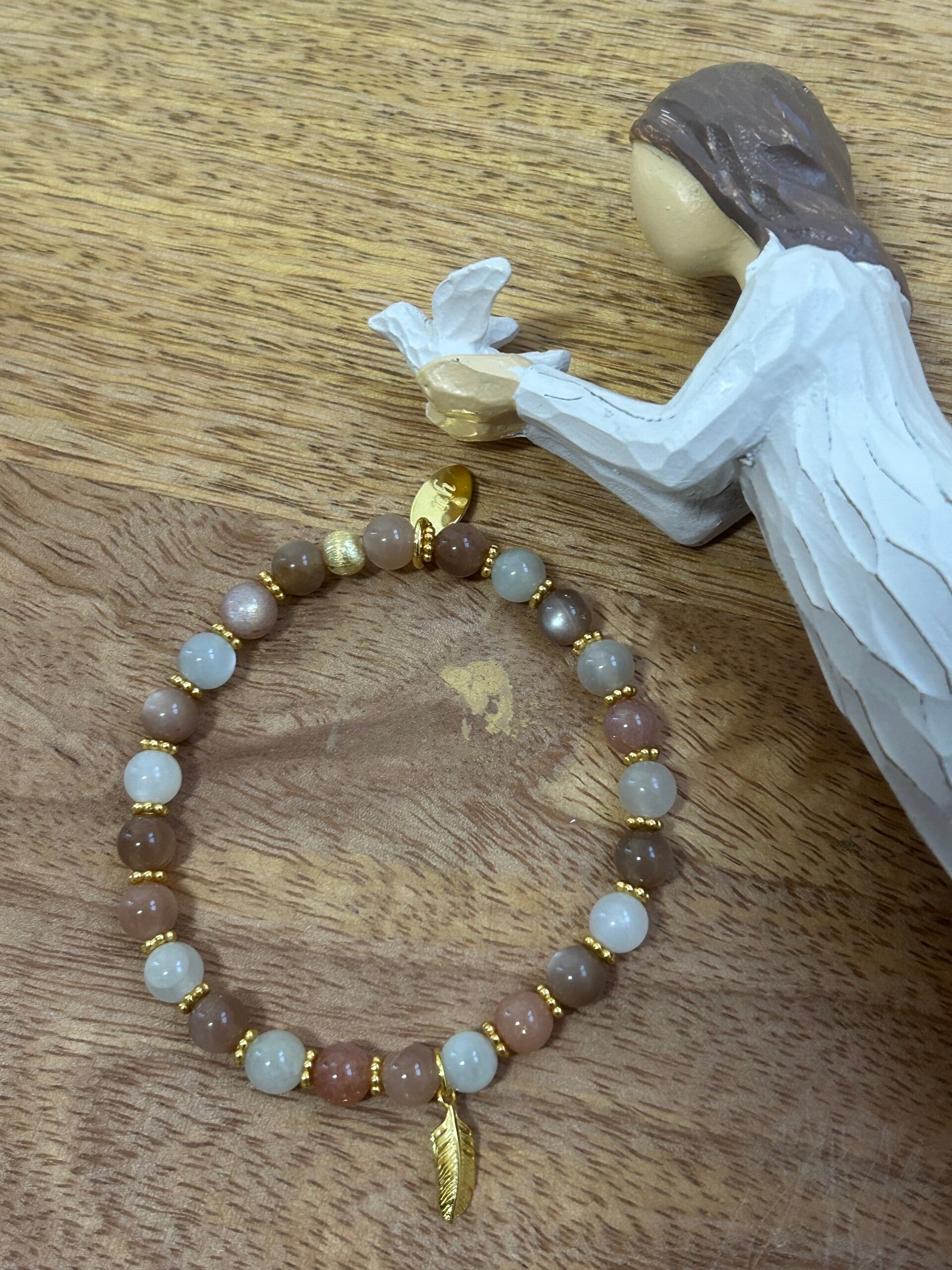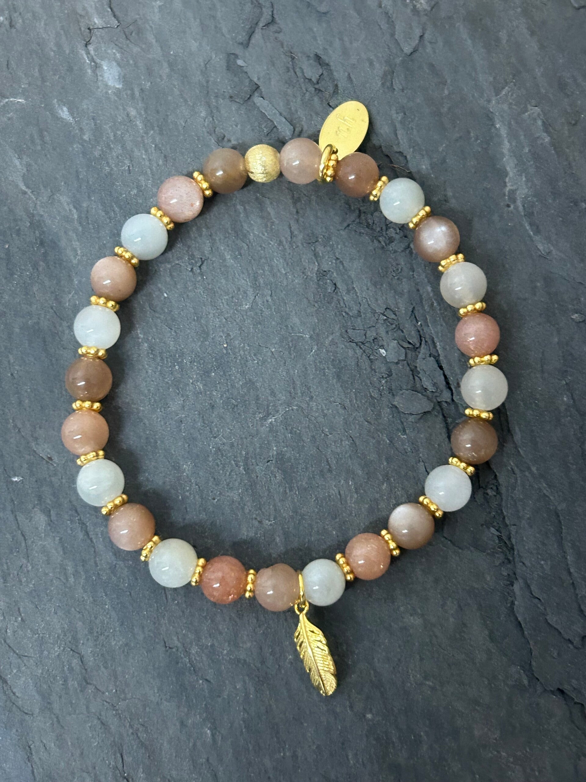 Hinweis: mit Stretch-Band; Silber 925 vergoldeter Anhänger "Feder" und Elemente; Kugeln 6mm