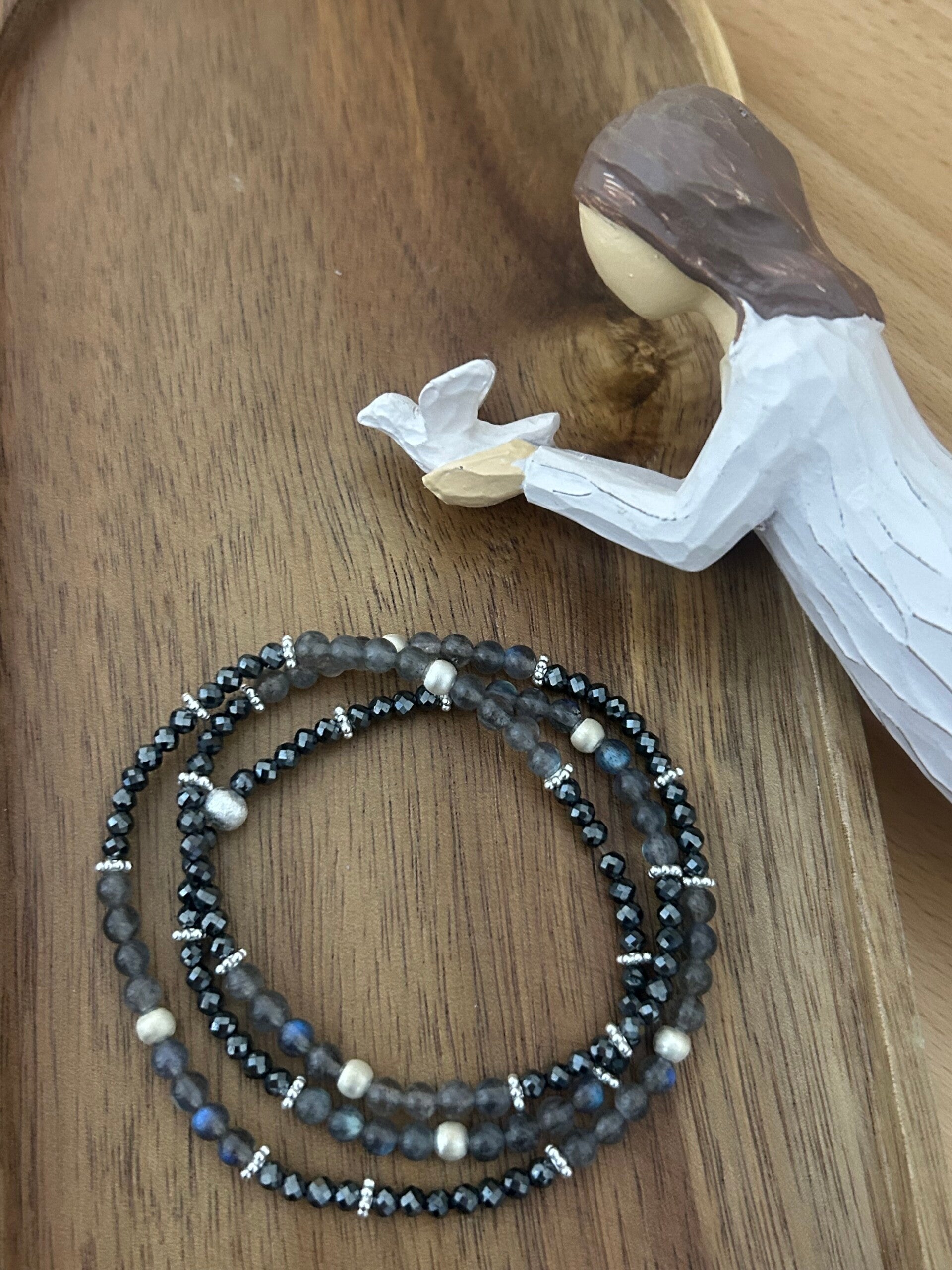Armband (3-fach) - Hämatit & Labradorit (A602)