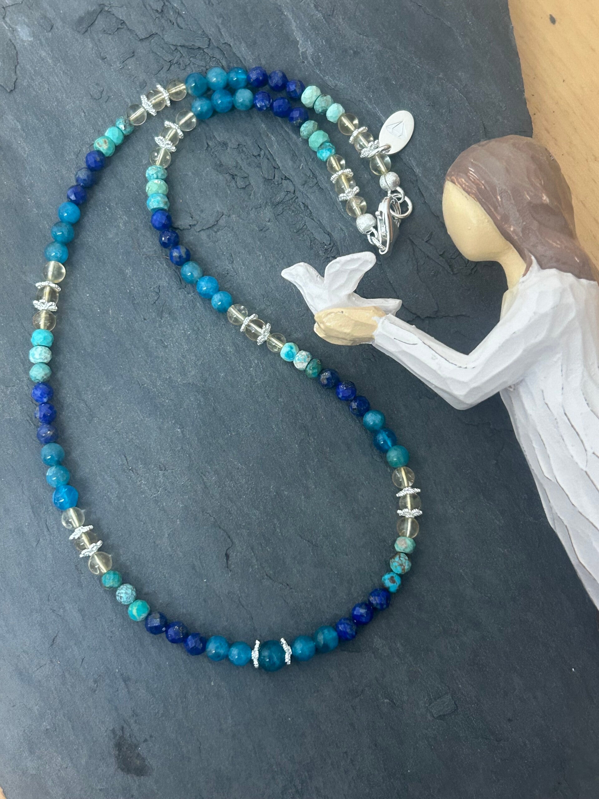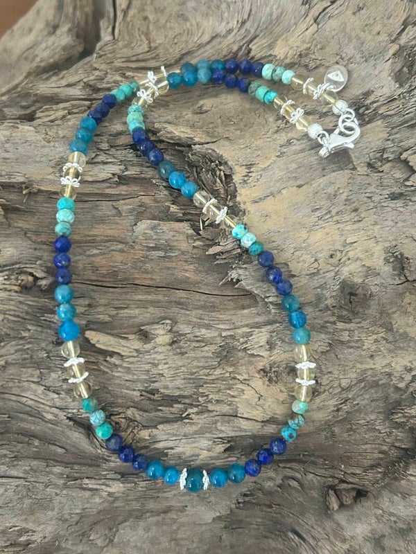 Heilsteine (Link zu Beschreibung und Wirkung): Apatit blau, Citrin, Lapislazuli, Türkis