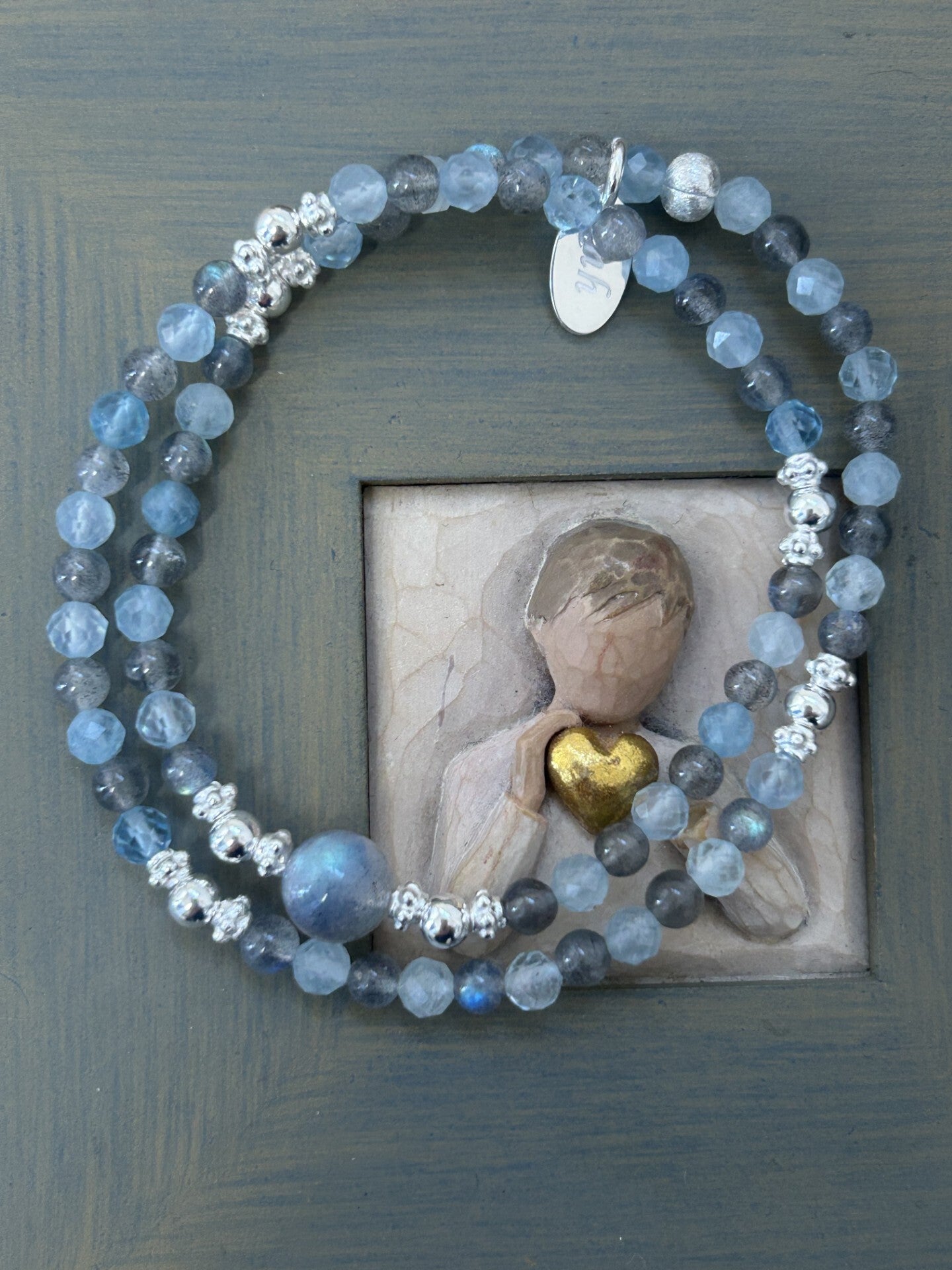 Armband (2-fach) - Aquamarin & Labradorit (A609)