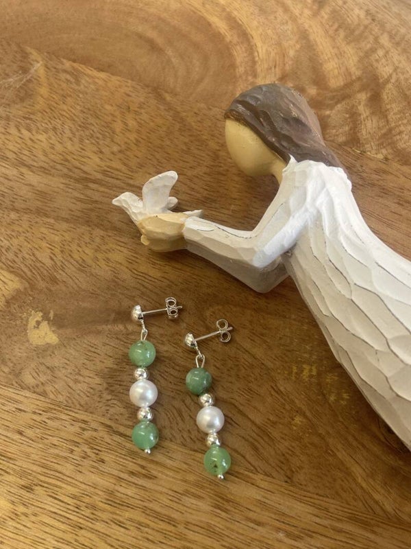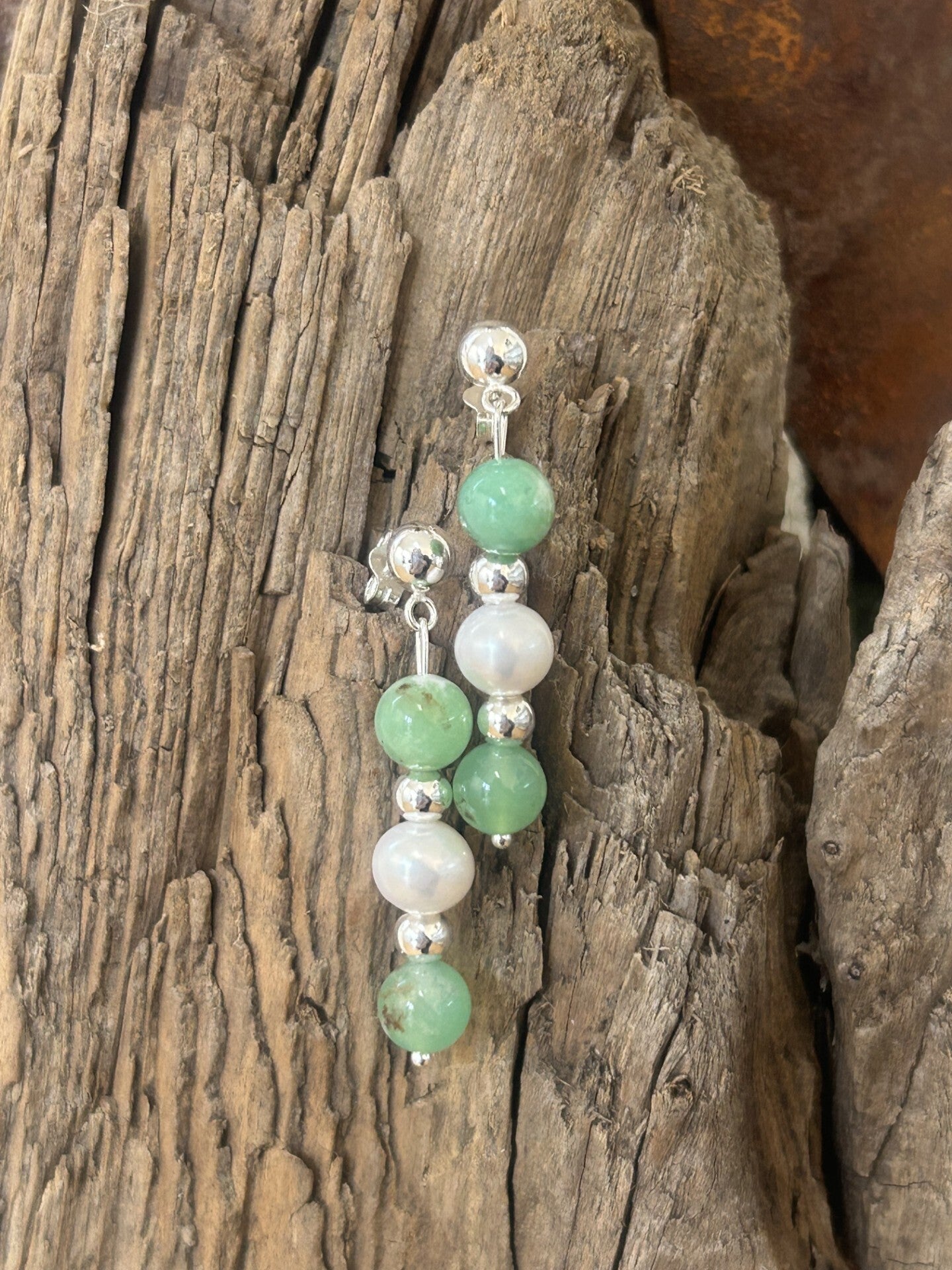 Ohrringe - Chrysopras & Süsswasserperle (O488)