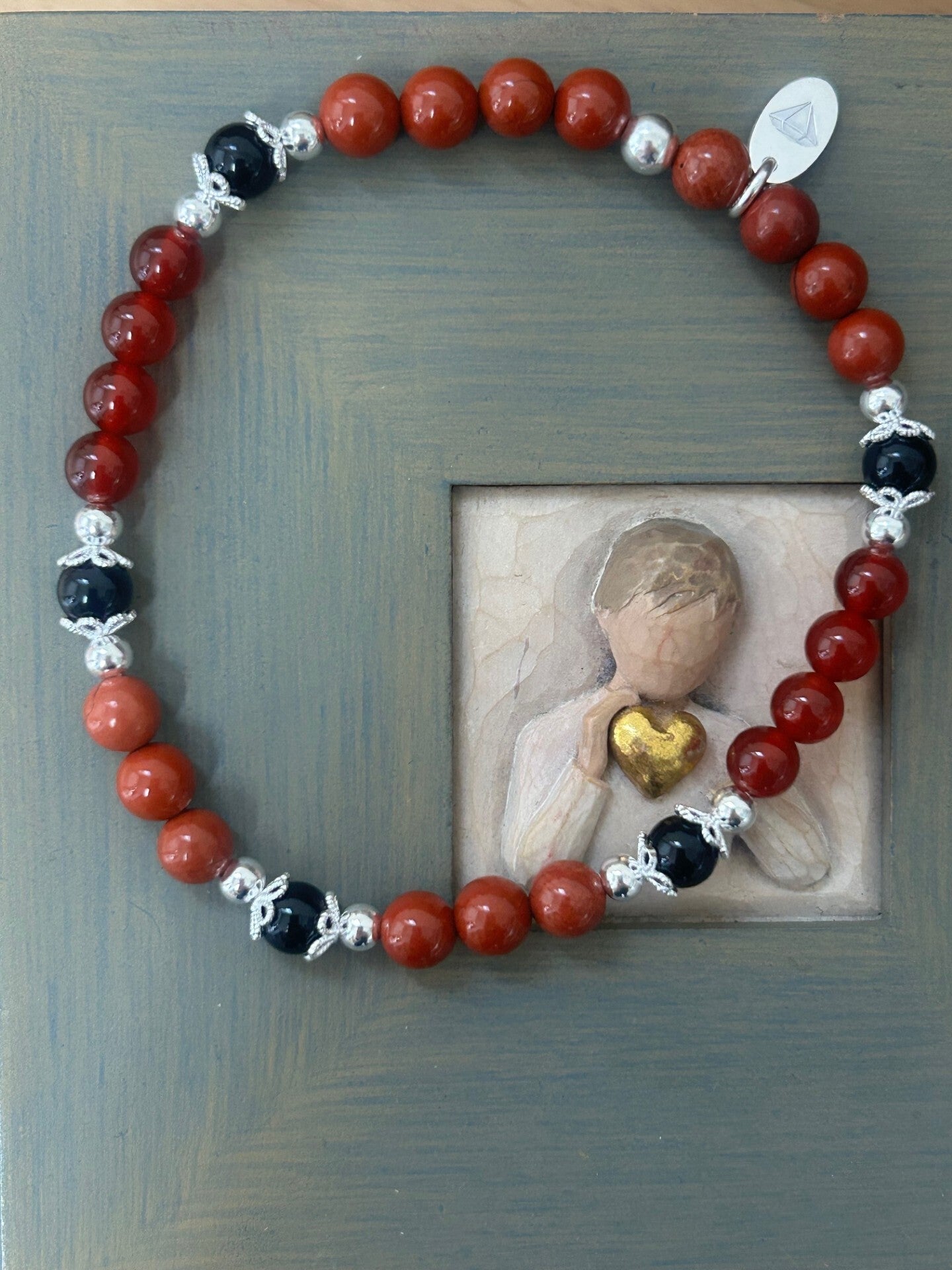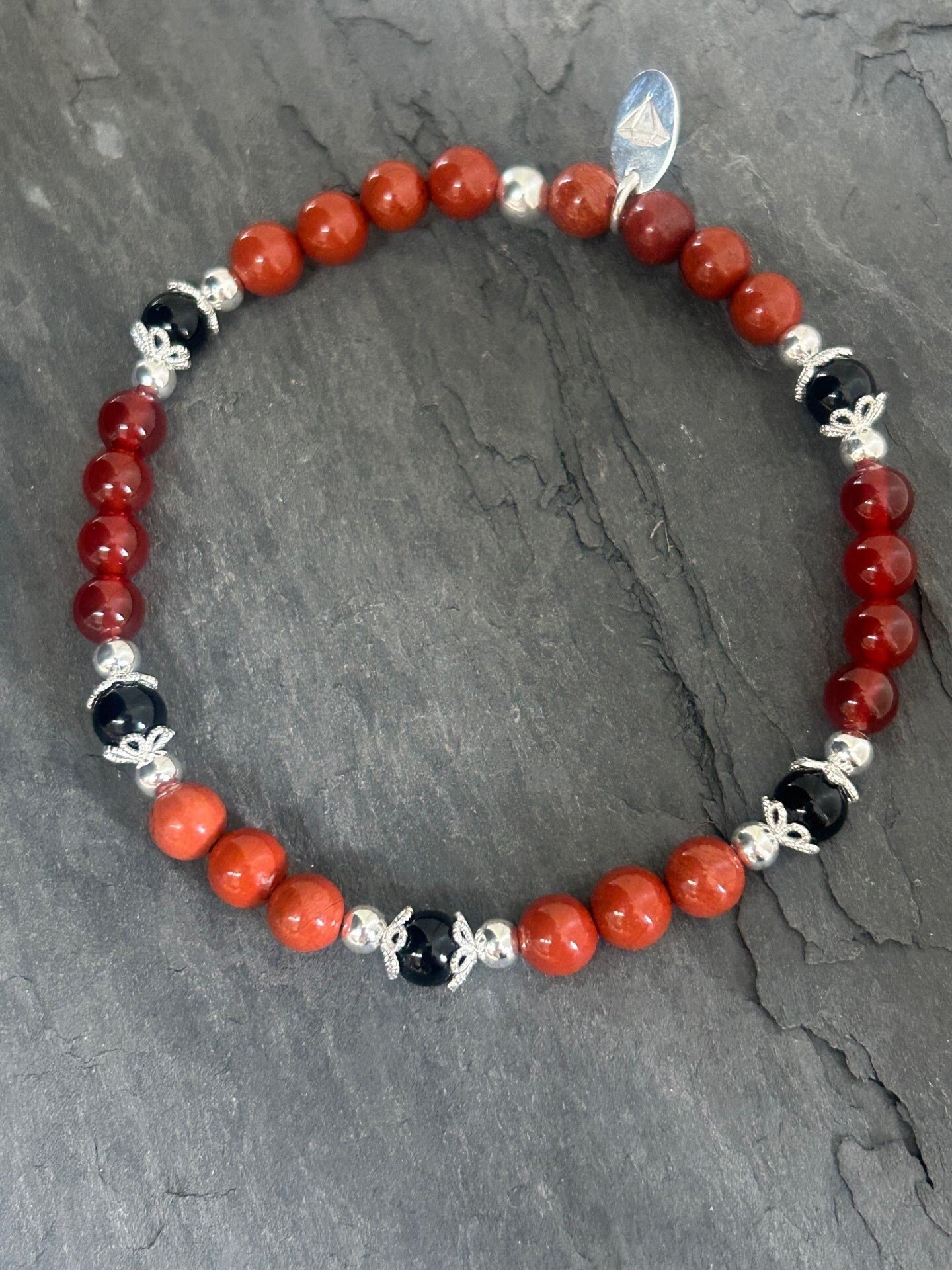 Heilsteine (Link zu Beschreibung und Wirkung): Jaspis rotbraun, Karneol, Onyx